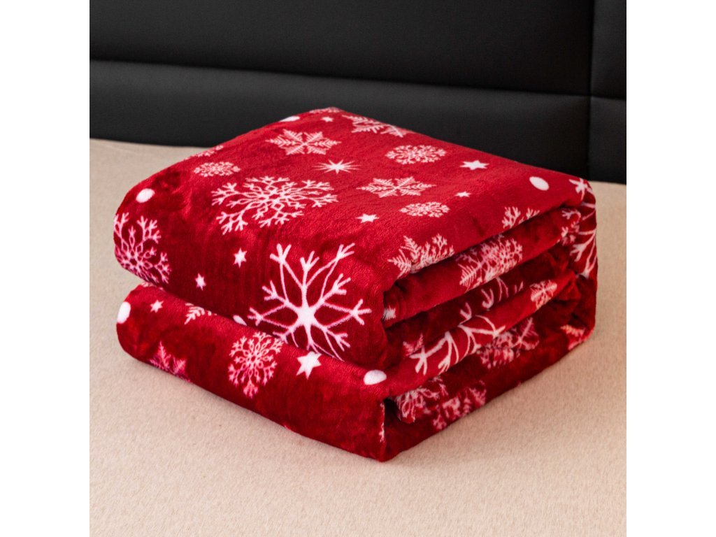 2x Rote Mikrofleece-Weihnachtsdecke SNOWFALL 150x200 cm