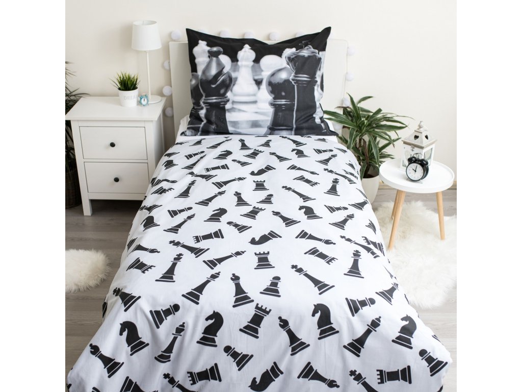 3D Baumwoll-Bettwäsche CHESS DREAM schwarz-weiß, 100% Baumwolle