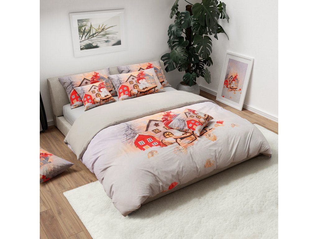 3D Baumwoll-Bettwäsche SNOWMAN ON A SLEIGH grau, 100% Baumwolle