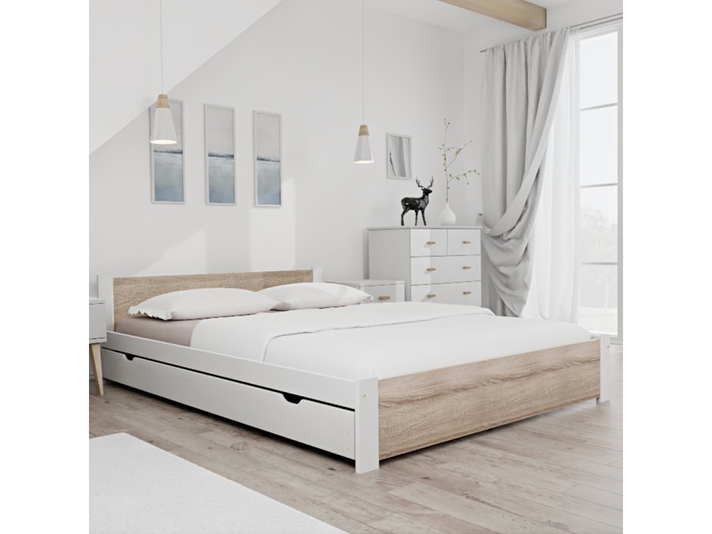 AKTION Bett IKAROS 160 x 200 cm, weiß/Sonoma Eiche II. Wahl