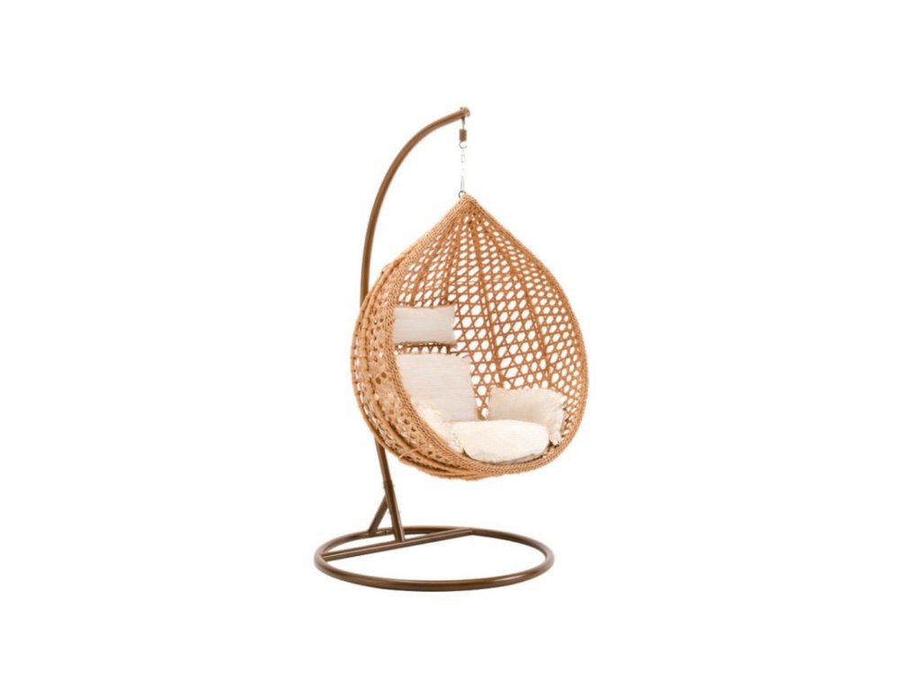 Das hellbraune Angebot: Hellbrauner Hängekorbsessel TROPIKAL mit Ständer II. Wahl, das wie ein Nest aussieht, können Sie im Garten aufstellen, wo es nicht nur ein spielerisches Accessoire, sondern vor allem ein perfekter Ort zum Entspannen ist.