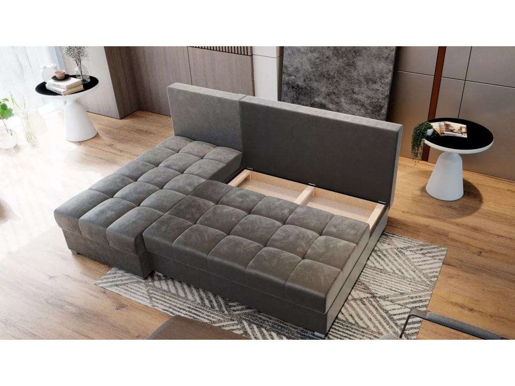 Verleihen Sie Ihrem Interieur nordische Eleganz mit dem ausziehbaren Ecksofa ZENA. Dieses skandinavische Sofa zeichnet sich durch einfaches, minimalistisches Design und hohe Funktionalität aus. Mit eleganter Steppung bringt es einen Hauch von Raffinesse in Ihr Zuhause.