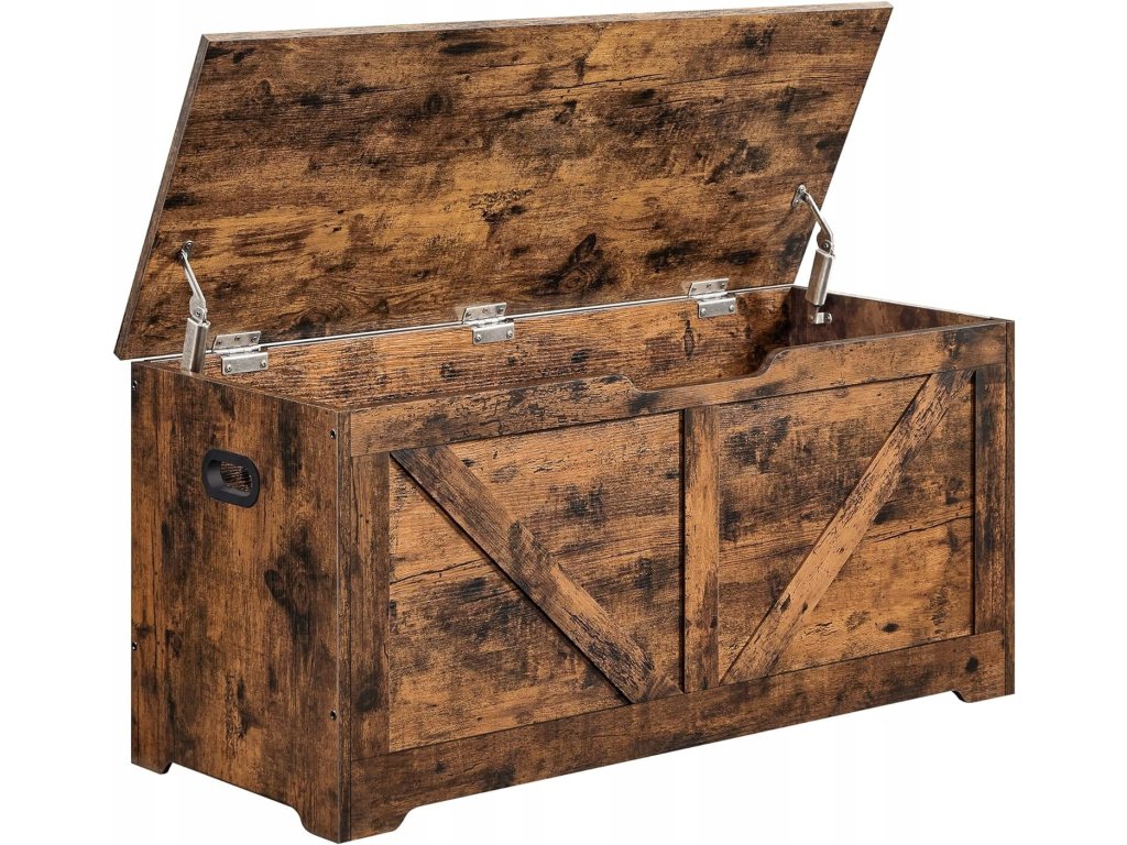 Suchen Sie nach einem praktischen Stauraum, der zugleich Ihr Interieur mit einem warmen und rustikalen Touch bereichert? Diese multifunktionale Truhe vereint Funktionalität mit Design und eignet sich hervorragend zur Aufbewahrung von saisonaler Kleidung, Bettwäsche, Kinderspielzeug oder Haushaltsgegenständen. Sie kann als dekorative Bank neben dem Bett, im Flur oder Wohnzimmer platziert werden. Dank der seitlichen Griffe ist die Handhabung einfach, und der robuste Deckel dient auch als Sitzgelegenheit. Die ideale Lösung für alle, die alles an seinem Platz haben und dennoch stilvoll eingerichtet wohnen möchten.