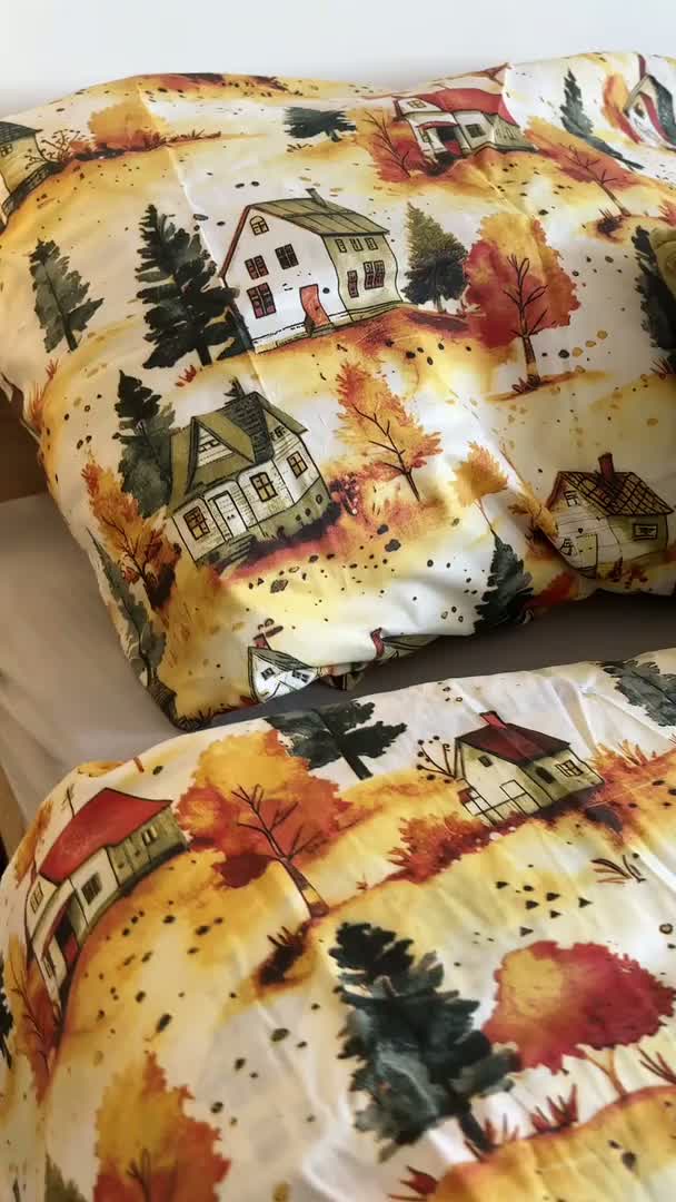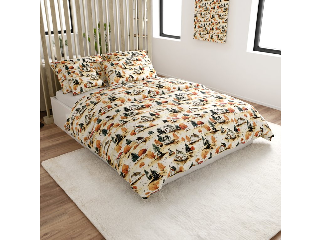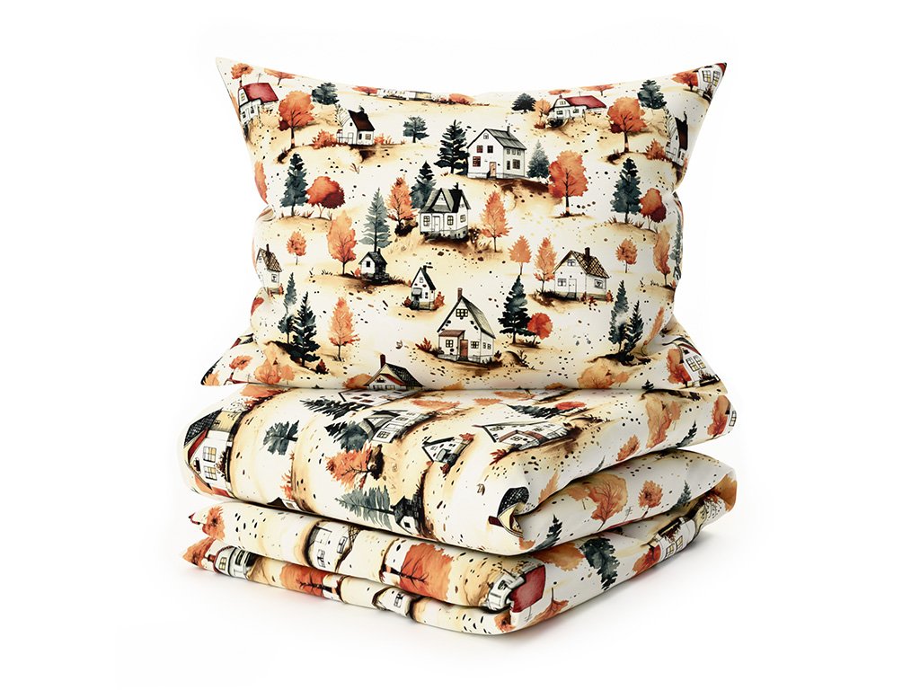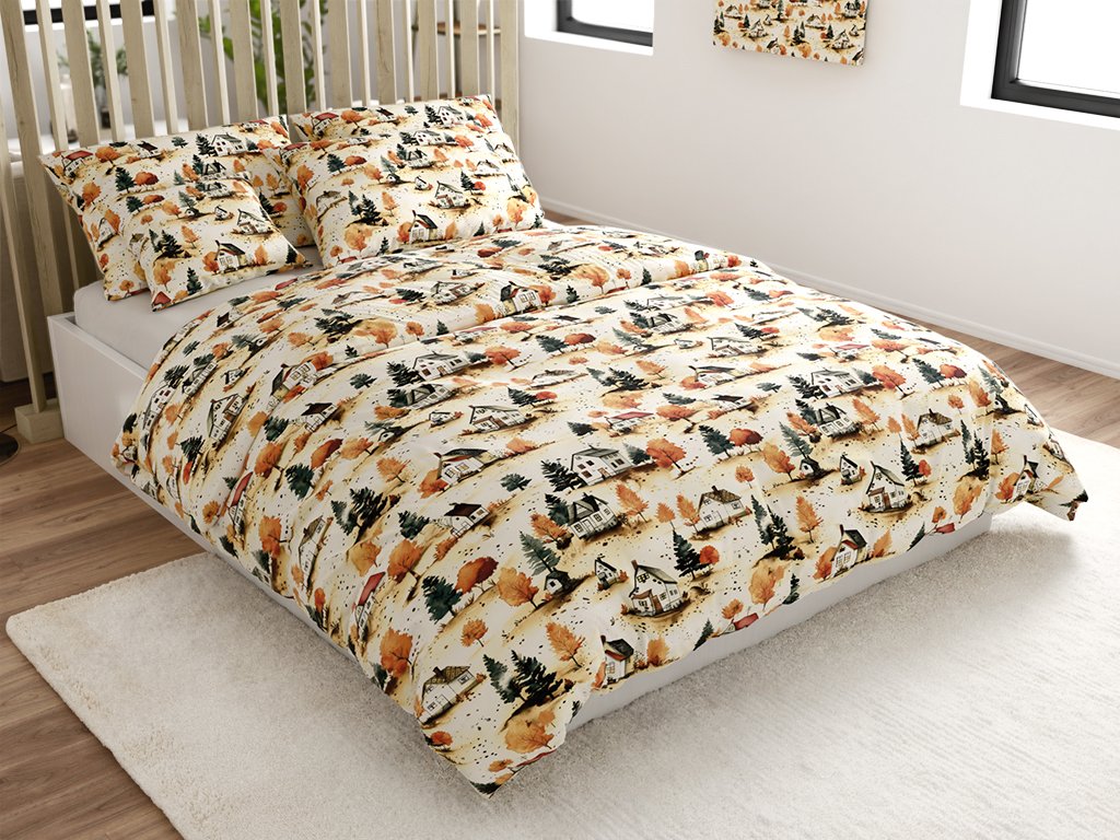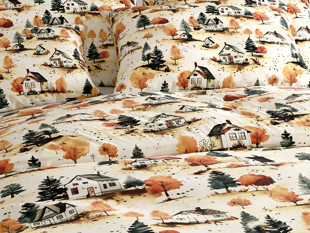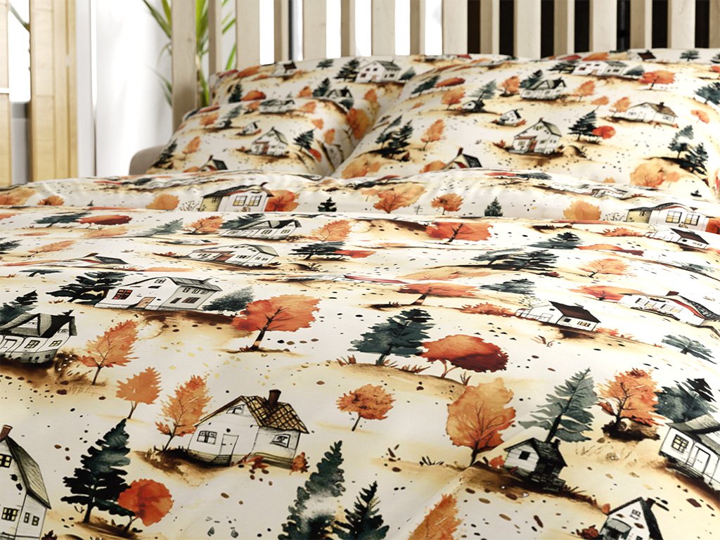 Baumwoll-Bettwäsche AUTUMN VILLAGE bunt