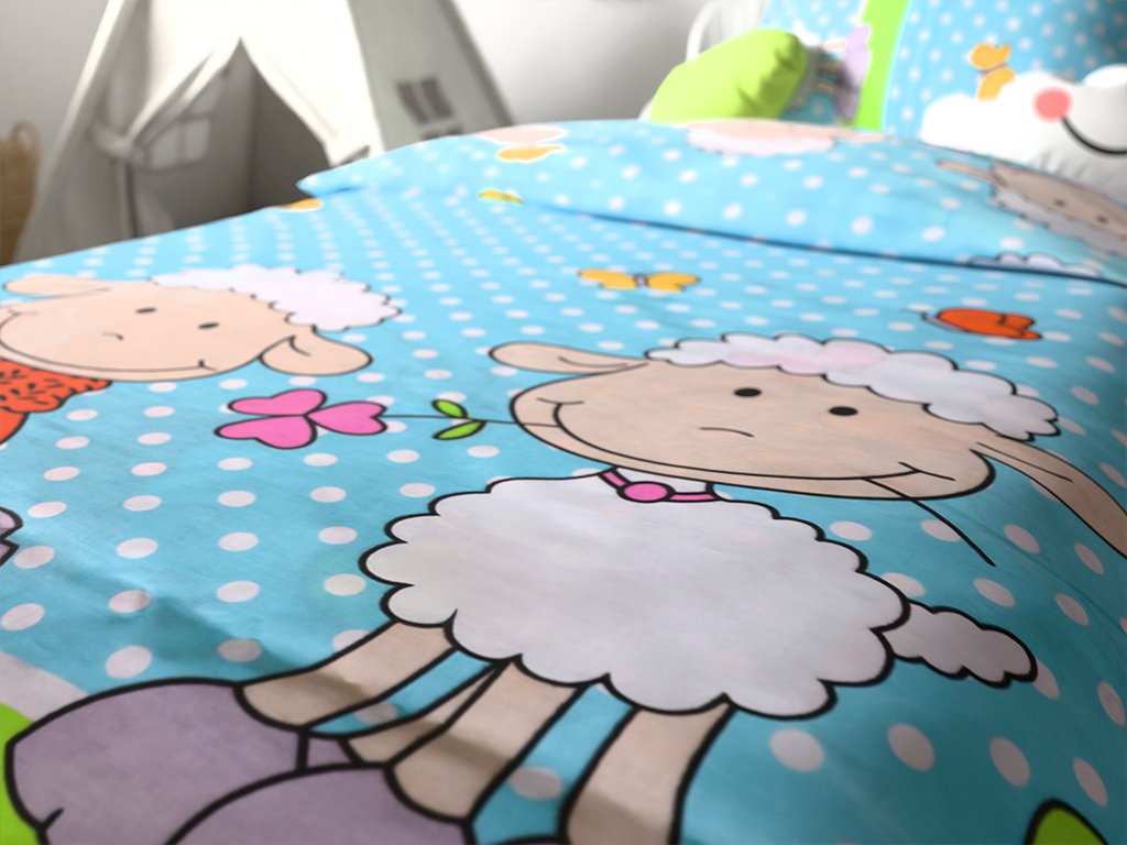 Baumwoll-Bettwäsche fürs Kinderbett SCHÄFCHEN blau