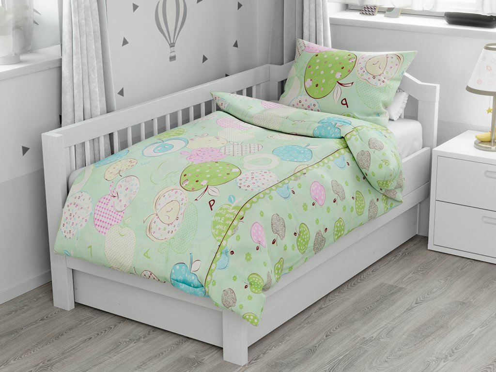 Bavlněné povlečení do postýlky BAREVNÁ JABLÍČKA zelené