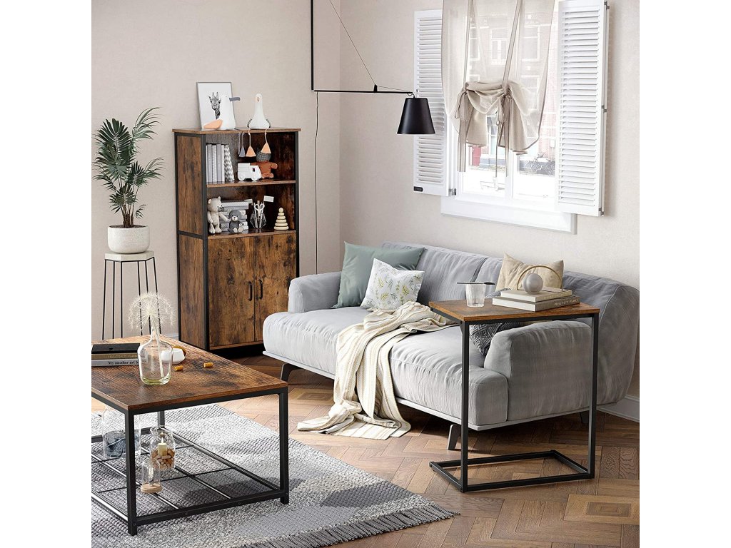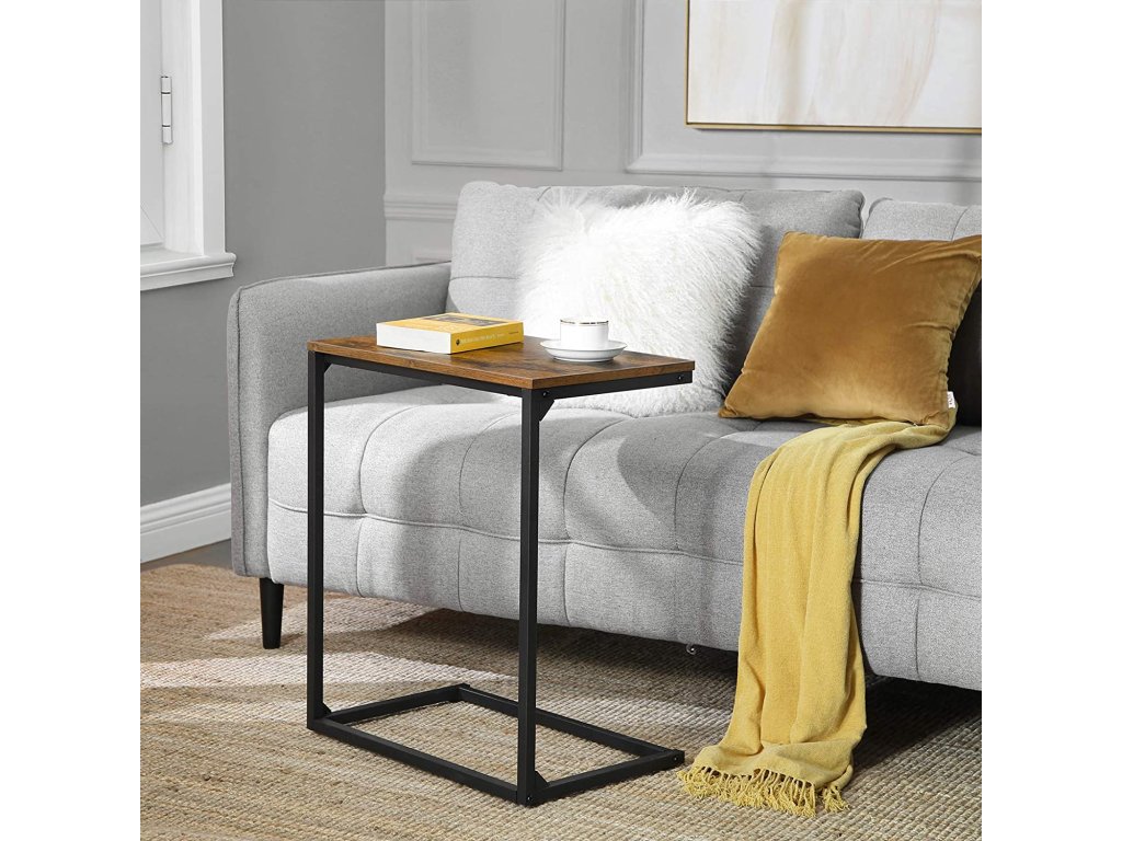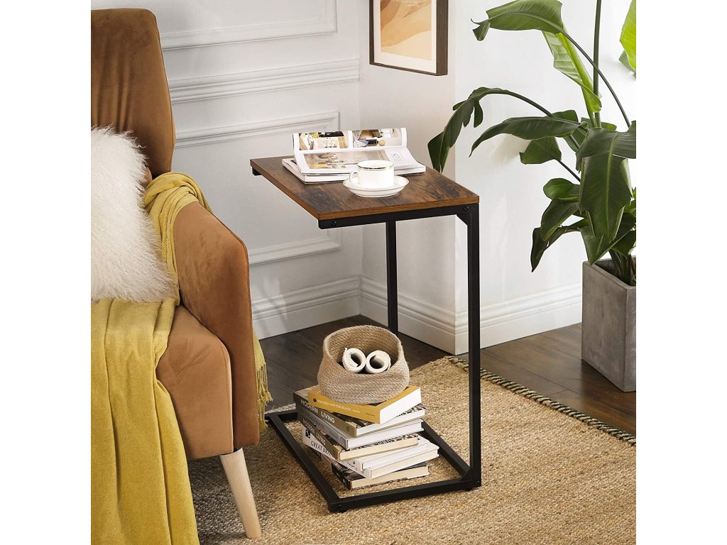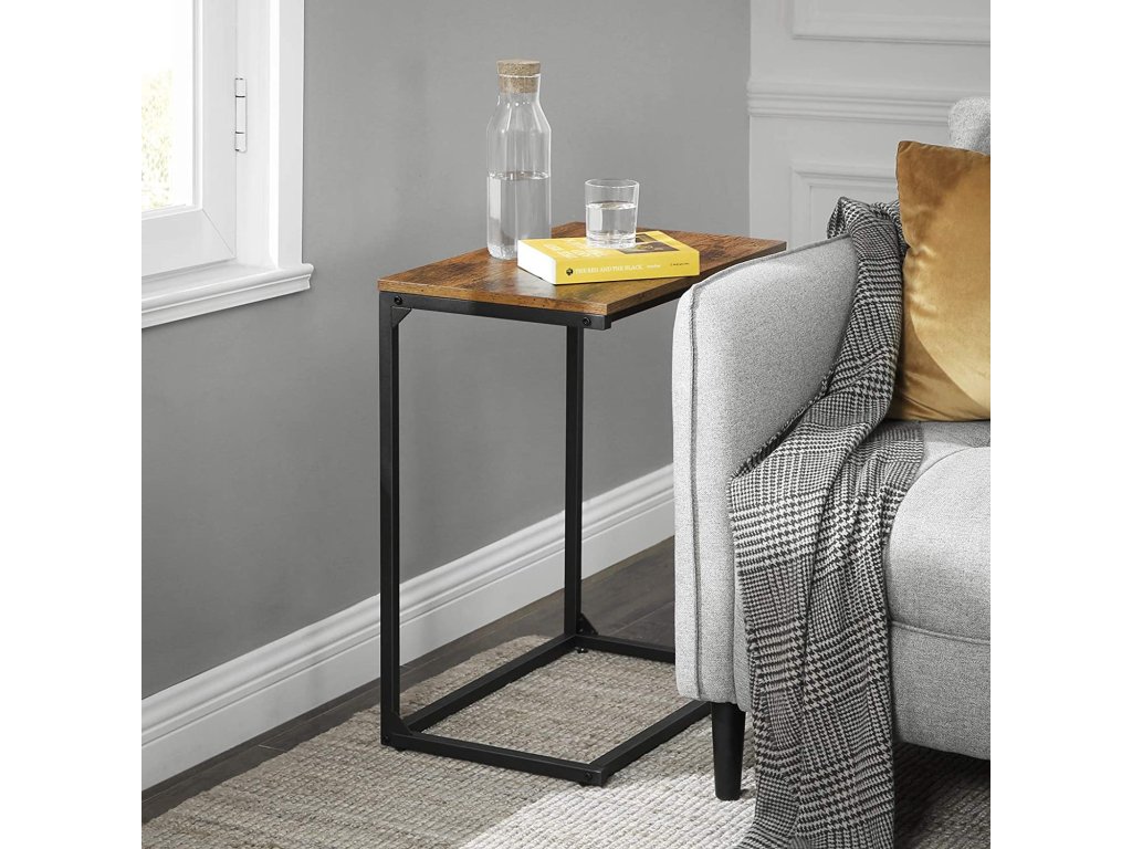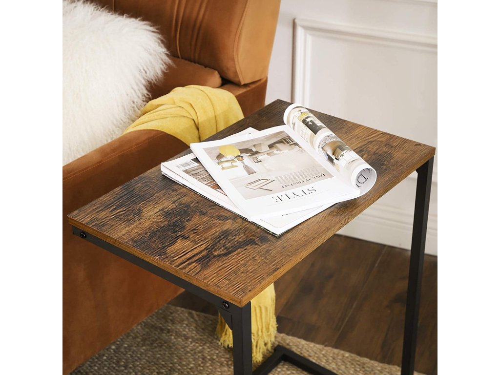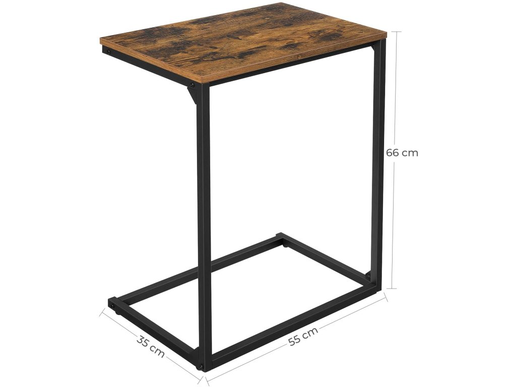 Eleganter und zugleich praktischer Tisch, der Ihr Interieur hervorragend ergänzt. Dank des durchdachten Designs lässt er sich leicht unter das Sofa oder das Bett schieben und als Arbeitsfläche, Ablage für ein Buch oder idealer Ort für eine Tasse Kaffee während der Entspannung nutzen. Die Kombination aus warmer rustikaler Spanplatte und schwarzer Metallkonstruktion schafft einen harmonischen Kontrast, der sowohl in moderne als auch klassische Interieurs passt. Die leichte Konstruktion ermöglicht ein einfaches Umstellen, egal ob Sie lesen, arbeiten oder entspannen.
