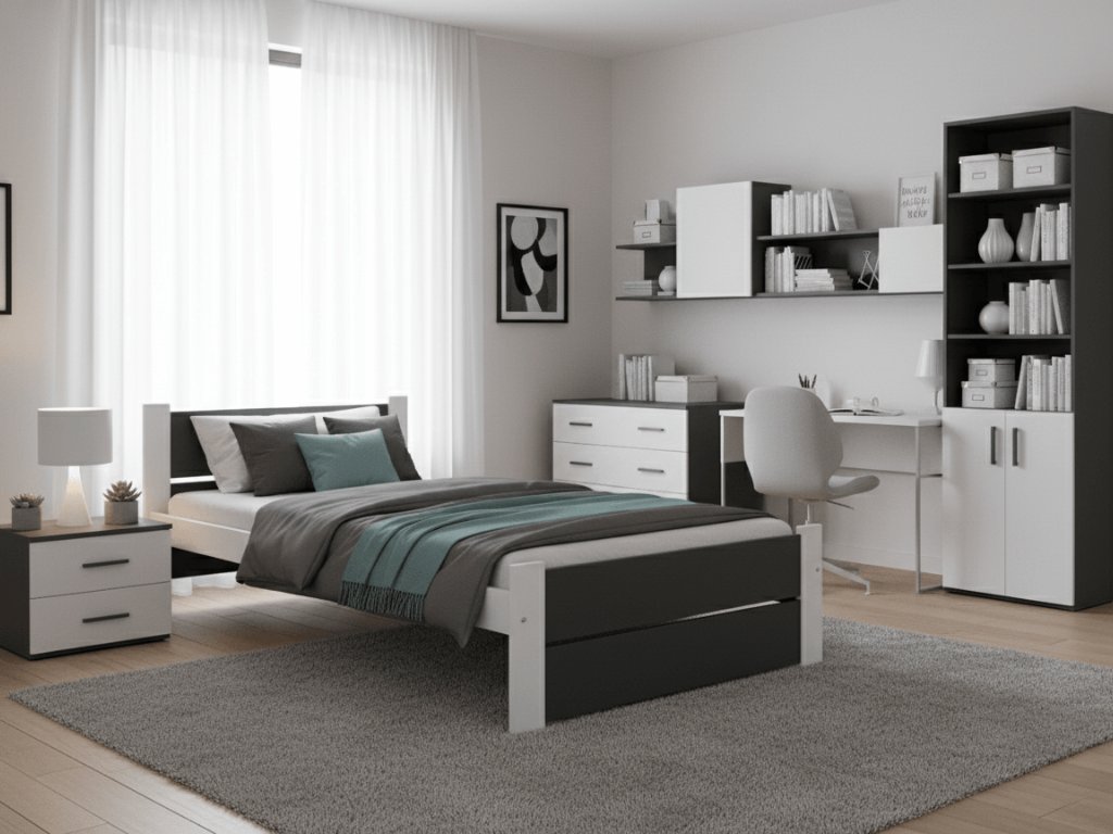- Möglichkeit zum Kauf von Aufbewahrungsboxen unter dem Bett und Nachttischen