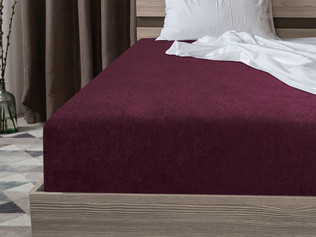 Bettlaken aus Frottee Weinrot 160 x 200 cm