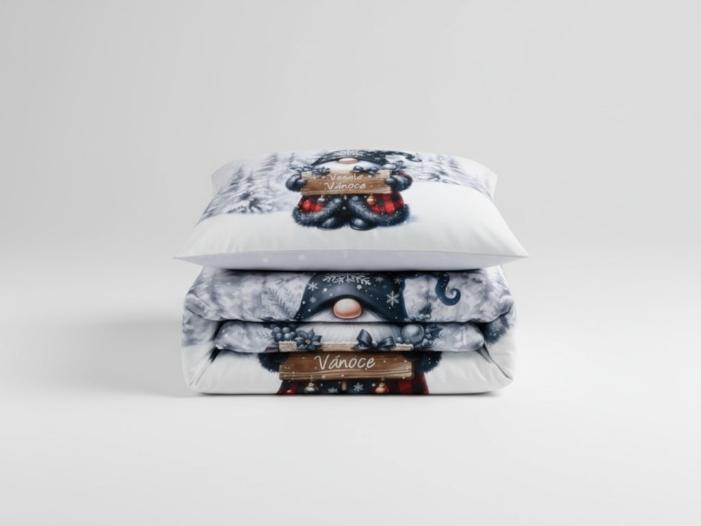 Bettwäsche aus Mikrosatin JOLLY GNOME weiß + Kissenbezug 45 x 45 cm gratis