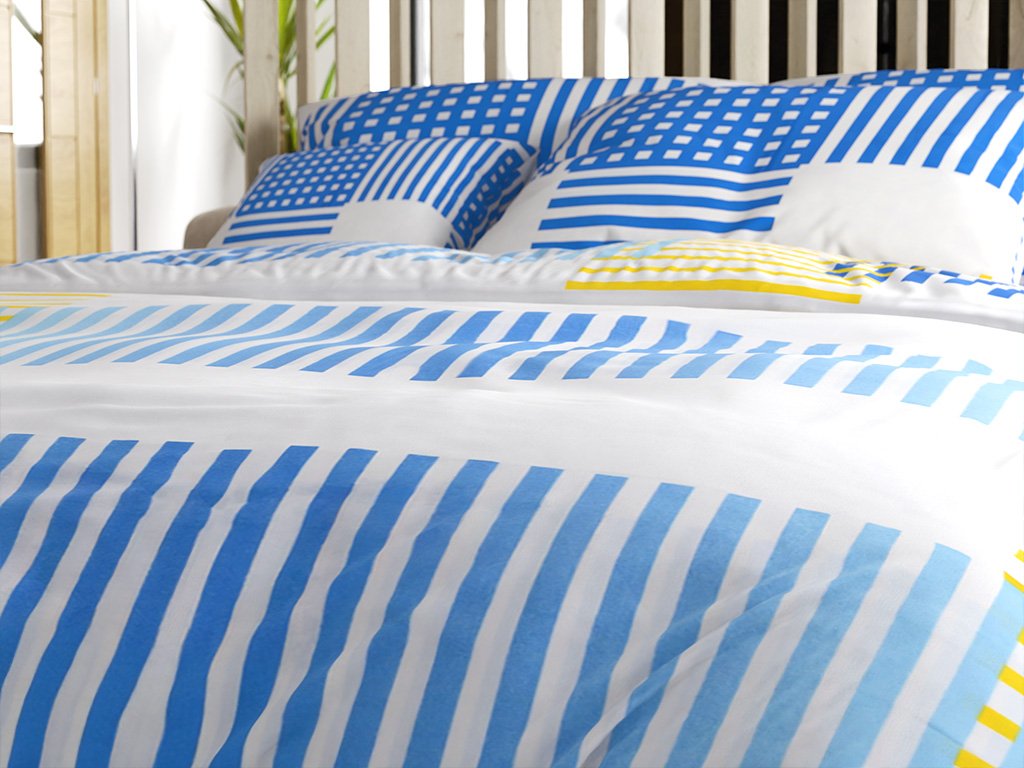 Bettwäsche aus Mikrosatin MIRVOLLI, weiß-blau