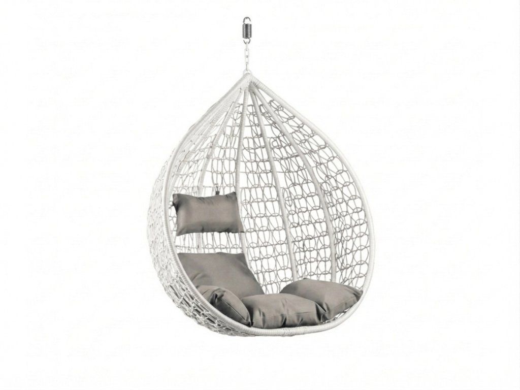 Závěsné křeslo KOKON promění každý prostor v dokonalé útočiště pohody. Jeho tvar připomínající kapku vytváří příjemné soukromí, kam se můžete schovat s knihou nebo jen tak relaxovat. Bílá kovová konstrukce působí vzdušně, ale zároveň pevně – ideální spojení stylu a funkčnosti. Polstrování ve světlém odstínu tvoří moderní kontrast a dodá pohodlí a útulnou atmosféru.