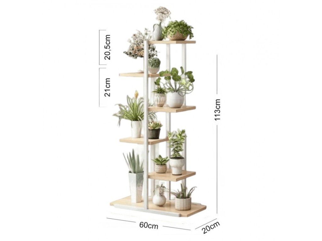 Eleganter und praktischer Blumenständer BALIA, hergestellt aus Laminat und ausgestattet mit 6 geräumigen Regalen. Dieser stilvolle Ständer ist die ideale Wahl für alle Grünliebhaber, die zu Hause einen grünen Dschungel schaffen möchten. Das Regal BALIA ist nicht nur eine funktionale, sondern auch eine ästhetische Ergänzung für Ihr Interieur. Mit seiner Hilfe können Sie Ihre Pflanzen in einer wunderschönen mehrstufigen Anordnung arrangieren, die in jedem Wohnzimmer, auf jeder Terrasse oder jedem Balkon zum Blickfang wird.