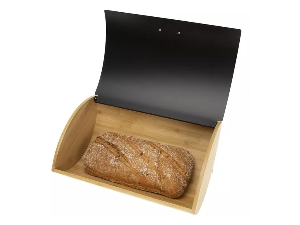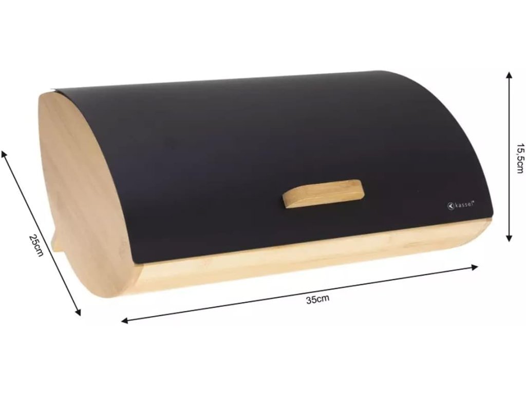Entdecken Sie den eleganten Brotkasten schwarz aus Bambus CRUSTY, der durch modernes Design und praktische Verwendbarkeit besticht. Mit seinen Abmessungen bietet er genügend Platz zur Aufbewahrung Ihrer Lieblingsbrotsorten und Backwaren. Hergestellt aus hochwertigem Bambus mit schwarzem Deckel, sieht dieser Brotkasten nicht nur großartig aus, sondern hält Ihr Gebäck auch länger frisch dank optimaler Lagerungsbedingungen.