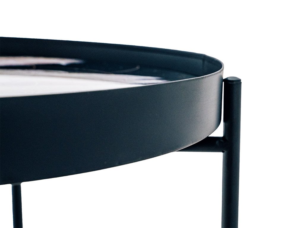 Ein Muster aus Ziergräsern auf schwarzem Hintergrund, verziert mit sanften Beige-Akzenten, sorgt für eine elegante und harmonische Farbkombination. Dieses stilvolle Design eignet sich ideal als Ergänzung zu Kerzen, Blumen und anderen Dekorationen, die seine Raffinesse unterstreichen. Der Couchtisch Lyria wird so nicht nur praktisch, sondern auch zu einem unverwechselbaren ästhetischen Element jedes Interieurs.