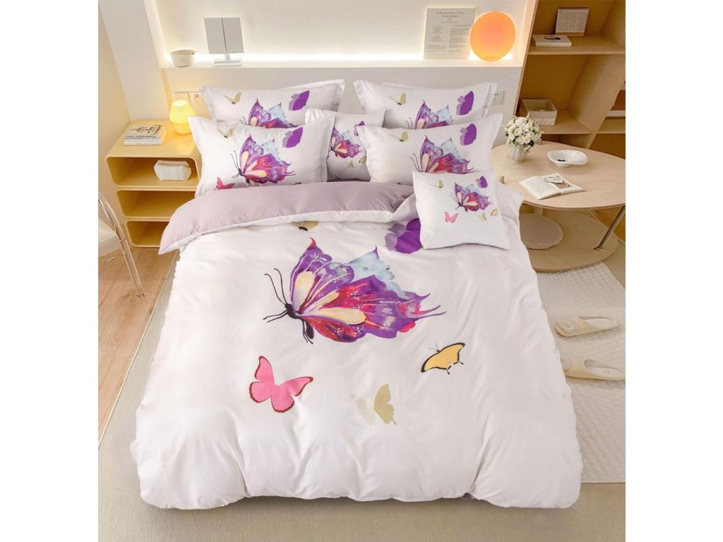 Cremefarbene Baumwollbettwäsche LILA BUTTERFLY