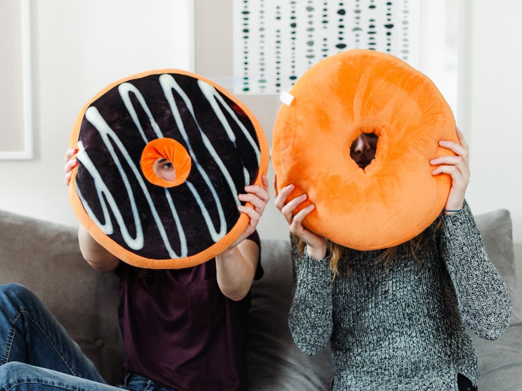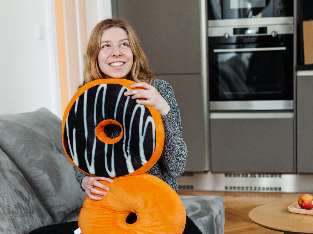 Dekokissen Donut mit Zuckerguss