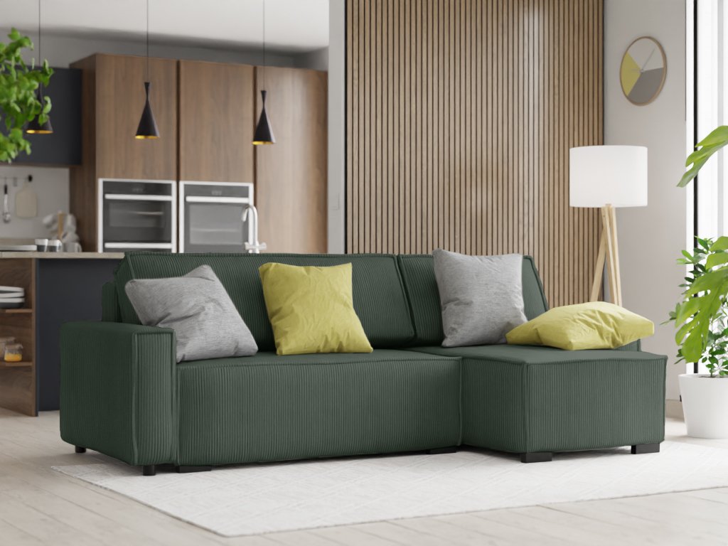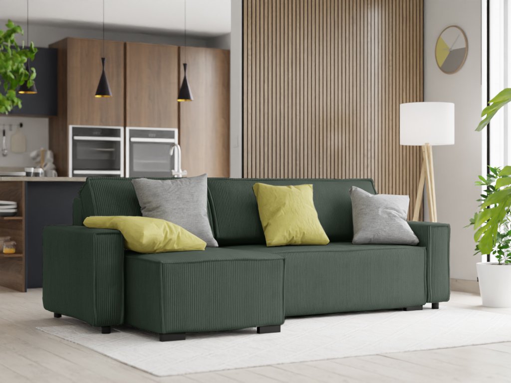 Ausklappbares Ecksofa Smart in Dunkelgrün wird zu einem Schmuckstück für jeden Raum. Das trendige Design in Kombination mit feinem Veloursbezug werden Sie auf den ersten Blick lieben.