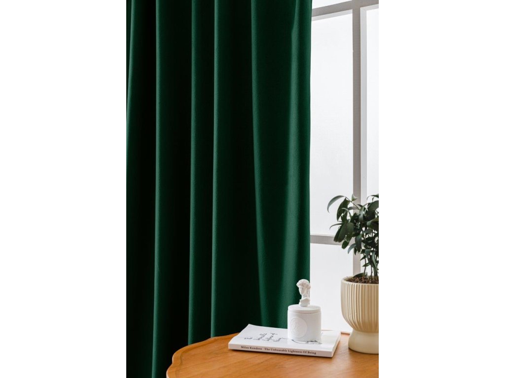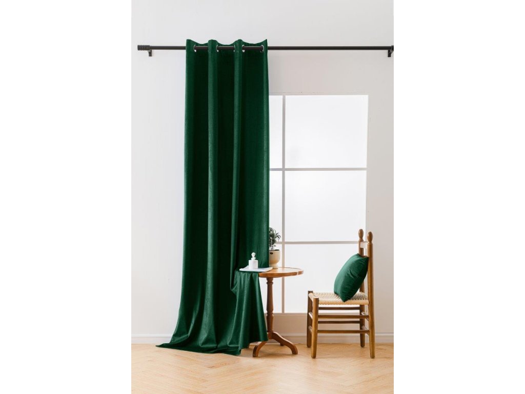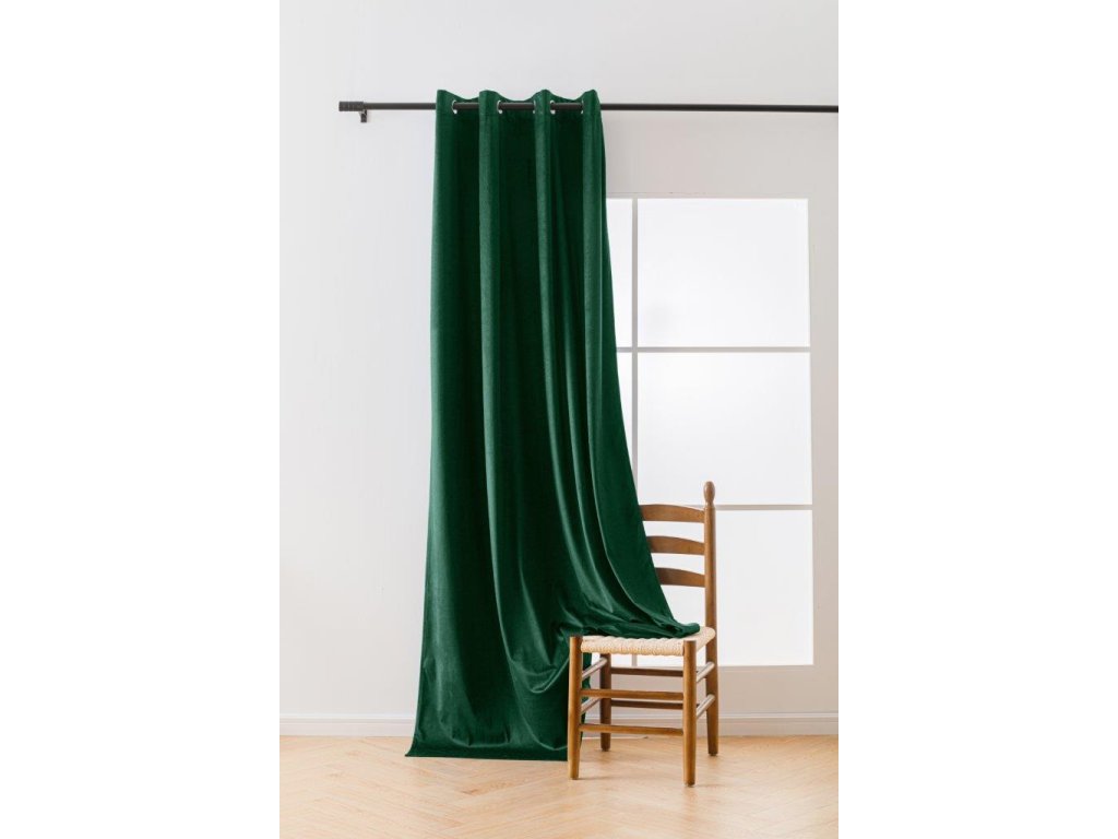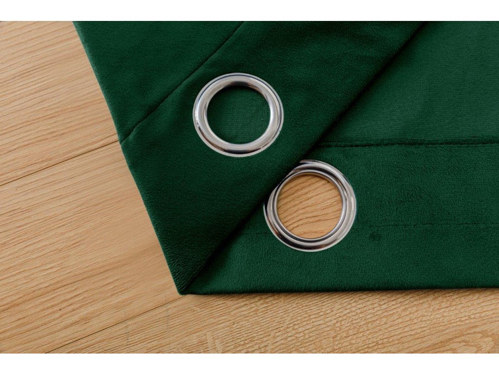Dunkelgrüne Verdunkelungsvorhänge VELVET 140x250 cm (2 Stück), Metallringe