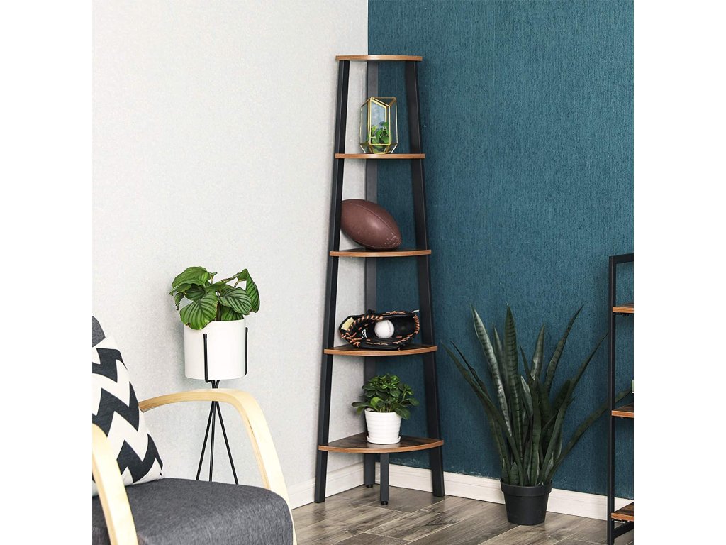 - Praktisches Eckregal mit abgerundeten Regalböden im rustikalen Stil
