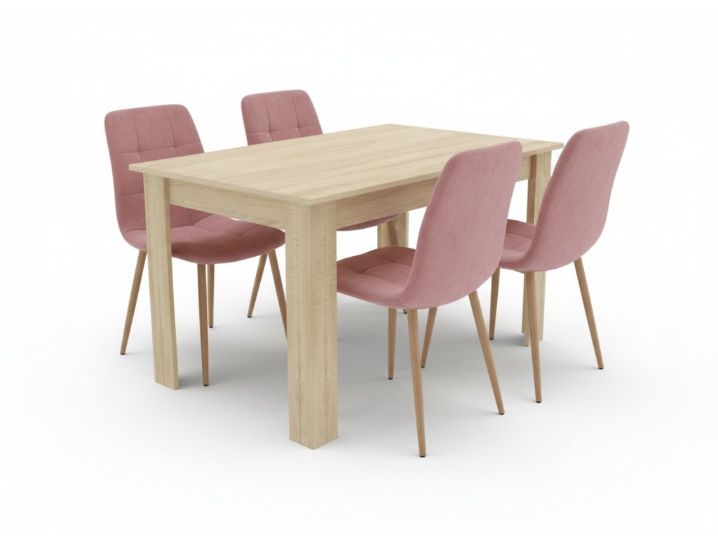 Essgruppe 1 + 4, Tisch UMEKO 120x80 cm Sonoma Eiche + rosa Samtstuhl KARA