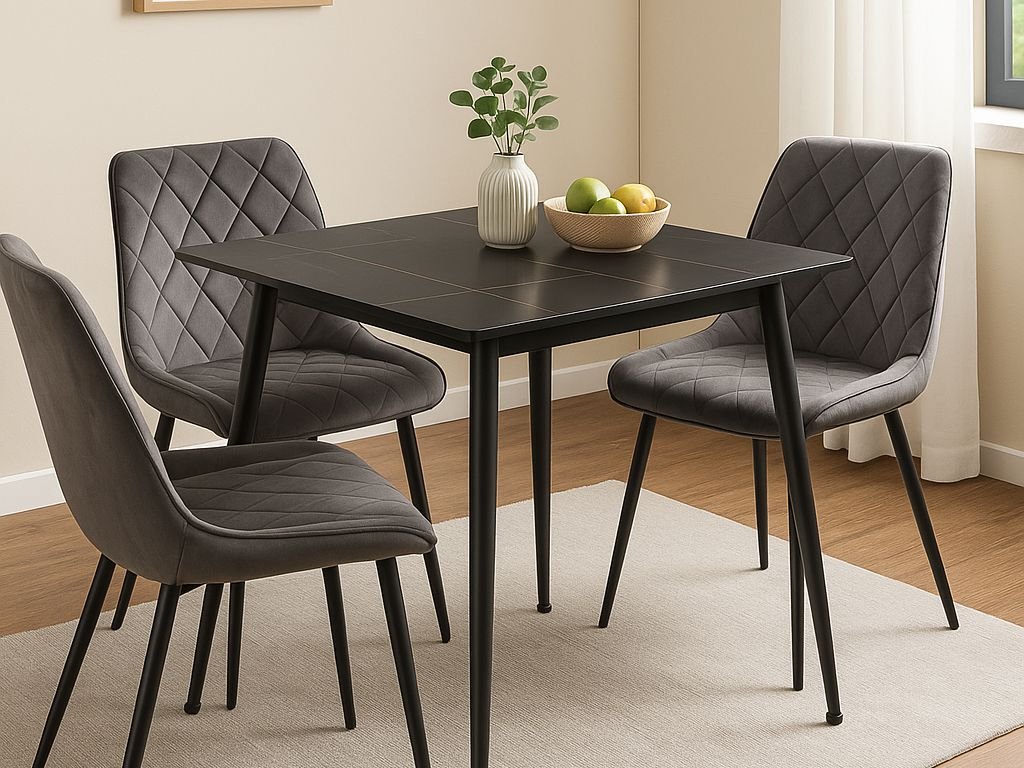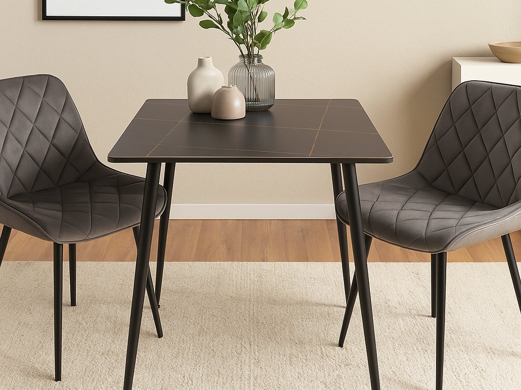 Esstisch RION 80x80 cm mit Keramikplatte, schwarz Marmor