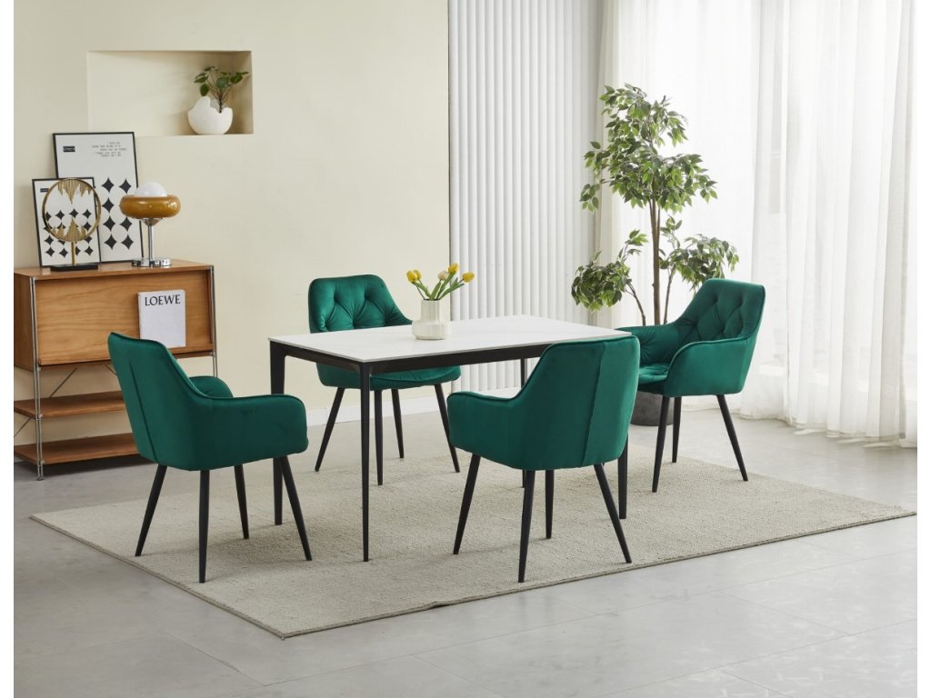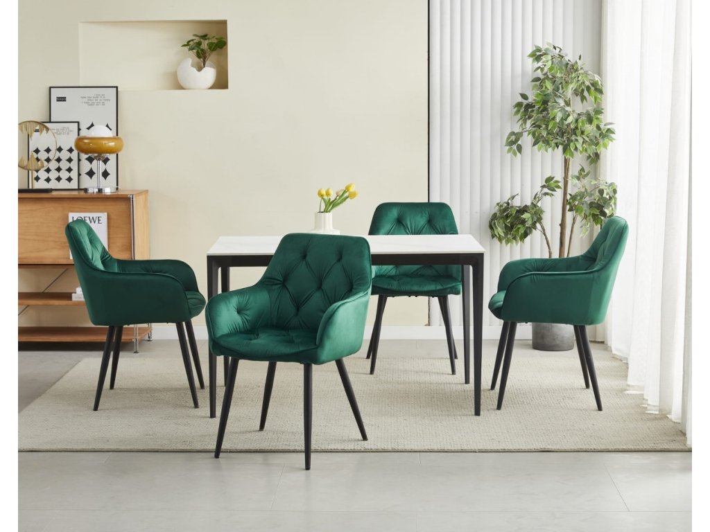 Samtstühle für das Esszimmer bieten eine elegante und komfortable Lösung für jeden Essbereich oder Küchenwinkel. Dank der weichen Oberfläche des Samts wirken sie luxuriös sowohl in der Optik als auch im Griff, während die weiche Polsterung und ergonomische Form für Komfort auch bei längerem Sitzen sorgen. Dieser Stuhltyp ist nicht nur ein praktisches Möbelstück, sondern auch ein markantes Designelement, das auf den ersten Blick beeindruckt. Er eignet sich hervorragend sowohl für das tägliche Essen als auch für gelegentliche Zusammenkünfte mit Gästen.