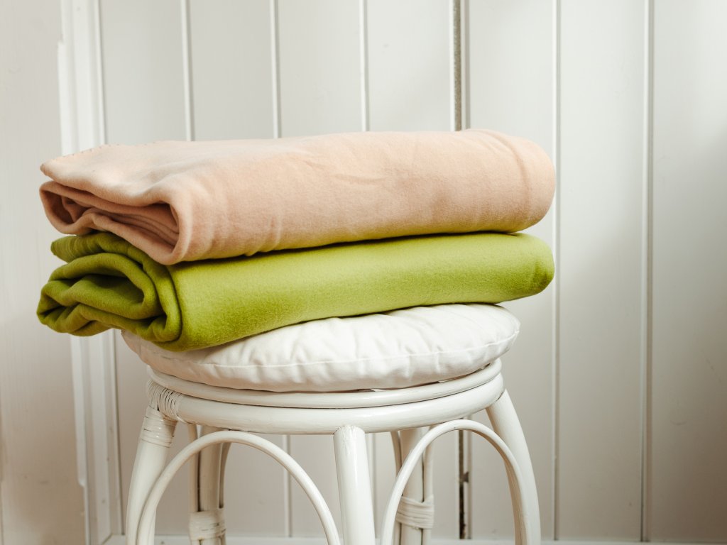- Decke aus Wolle, Mikroplüsch, Mikroflanell oder Bambus, muss nicht gebügelt werden