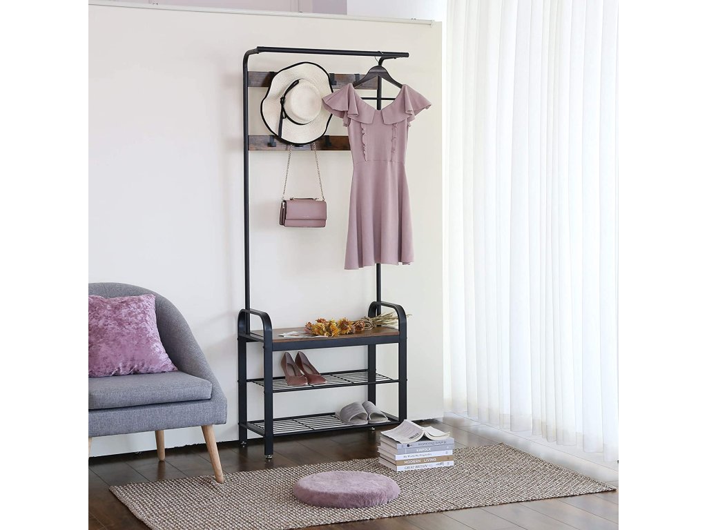 - Kompakter Kleiderständer mit Bank für Flur, Schlafzimmer oder Diele