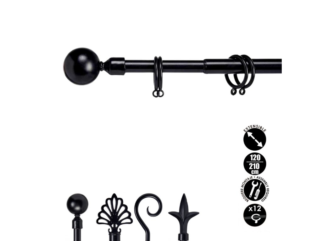 Gardinenstange aus Metall VALANCE GLOBE 120-210 cm, schwarz