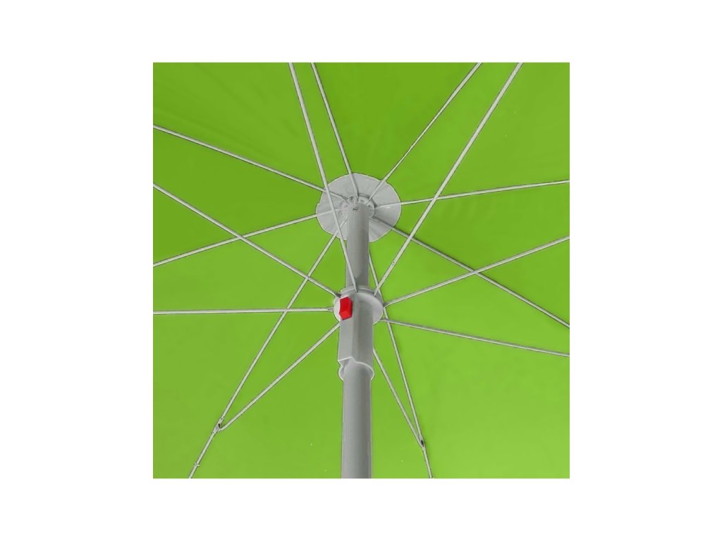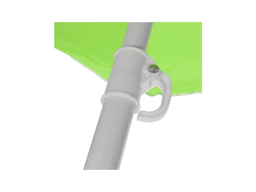 Grüner Garten-Sonnenschirm CORAL mit einem Durchmesser von 180 cm ist der ideale Begleiter für sommerliche Entspannung – egal, ob Sie im Garten relaxen oder einen Tag am Wasser verbringen. Dank der leichten Konstruktion lässt er sich einfach transportieren, schnell aufstellen und bietet angenehm Schatten genau dort, wo Sie ihn brauchen. Der robuste Stahlrahmen mit Pulverbeschichtung sorgt für Stabilität und Langlebigkeit auch bei häufigem Gebrauch.