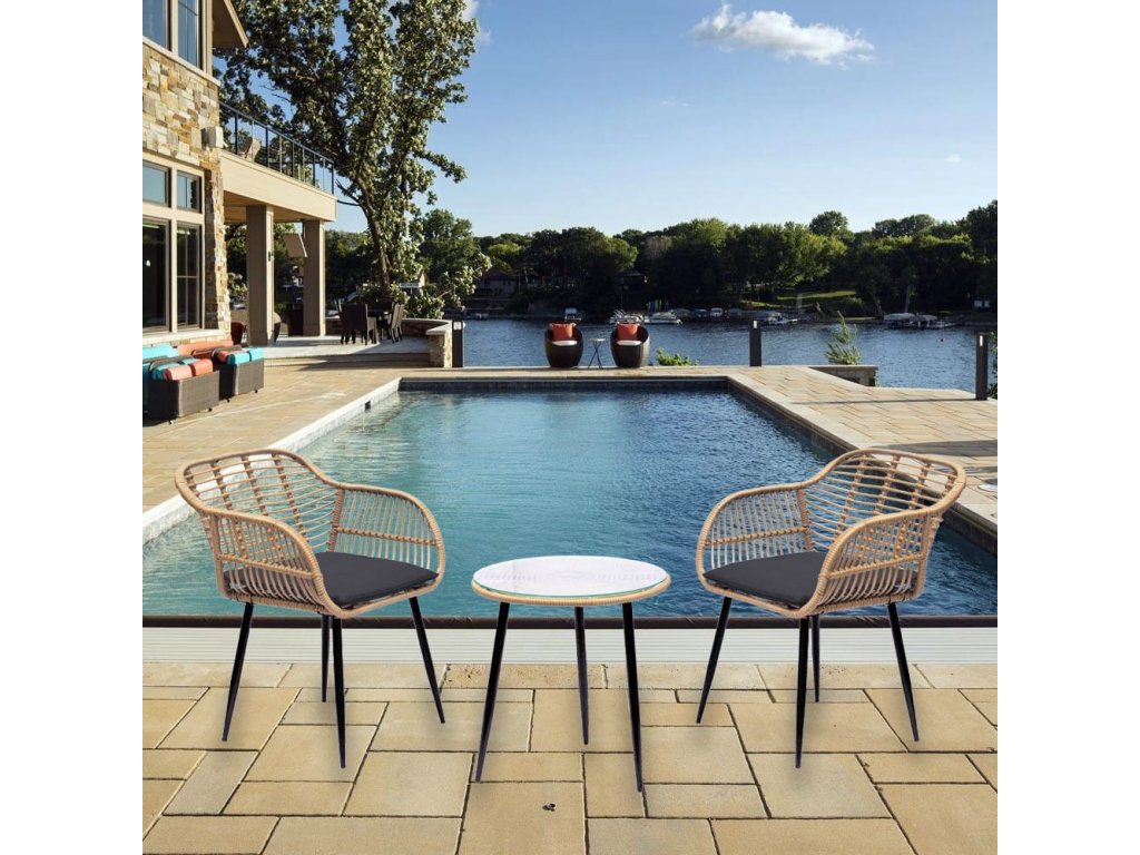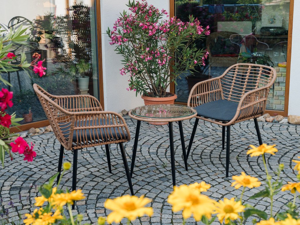 - Synthetisches Material (Techno-Rattan), völlig beständig gegen UV-Strahlung und widrige Witterungseinflüsse