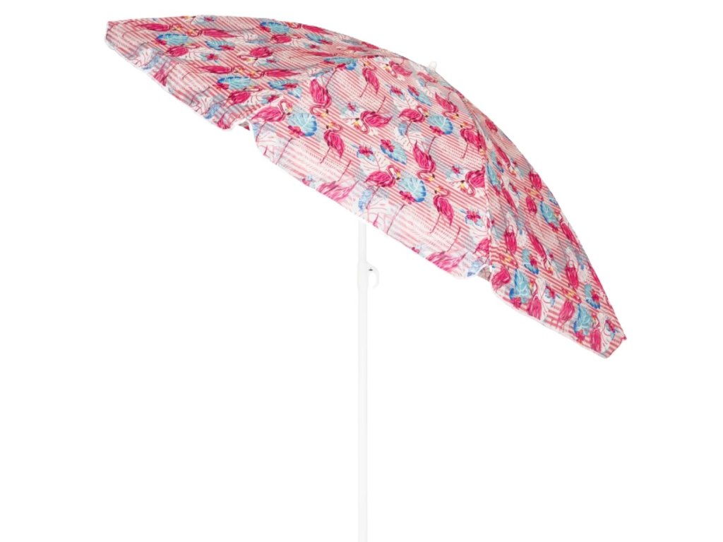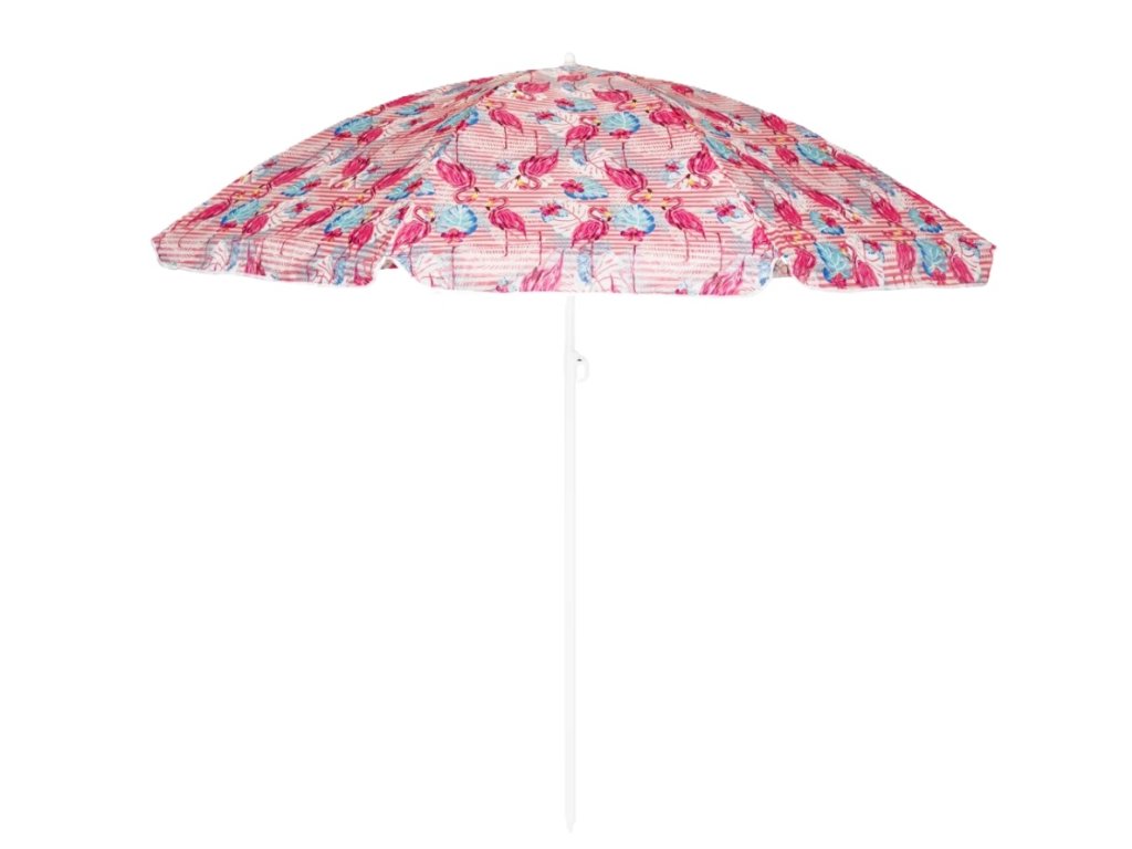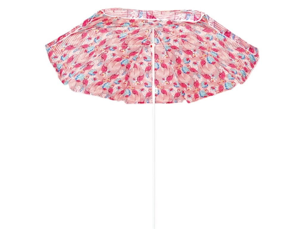 Růžový slunečník FLAMINGO 200 cm – veselý motiv, kloub, hrot, ideální na pláž i zahradu