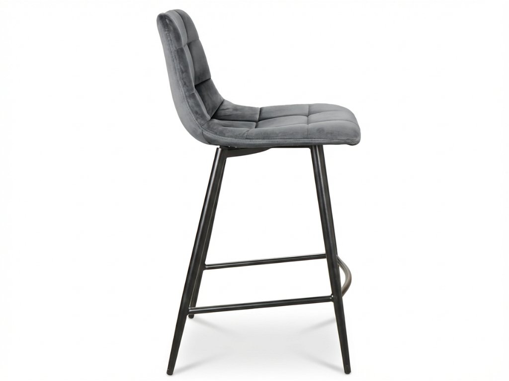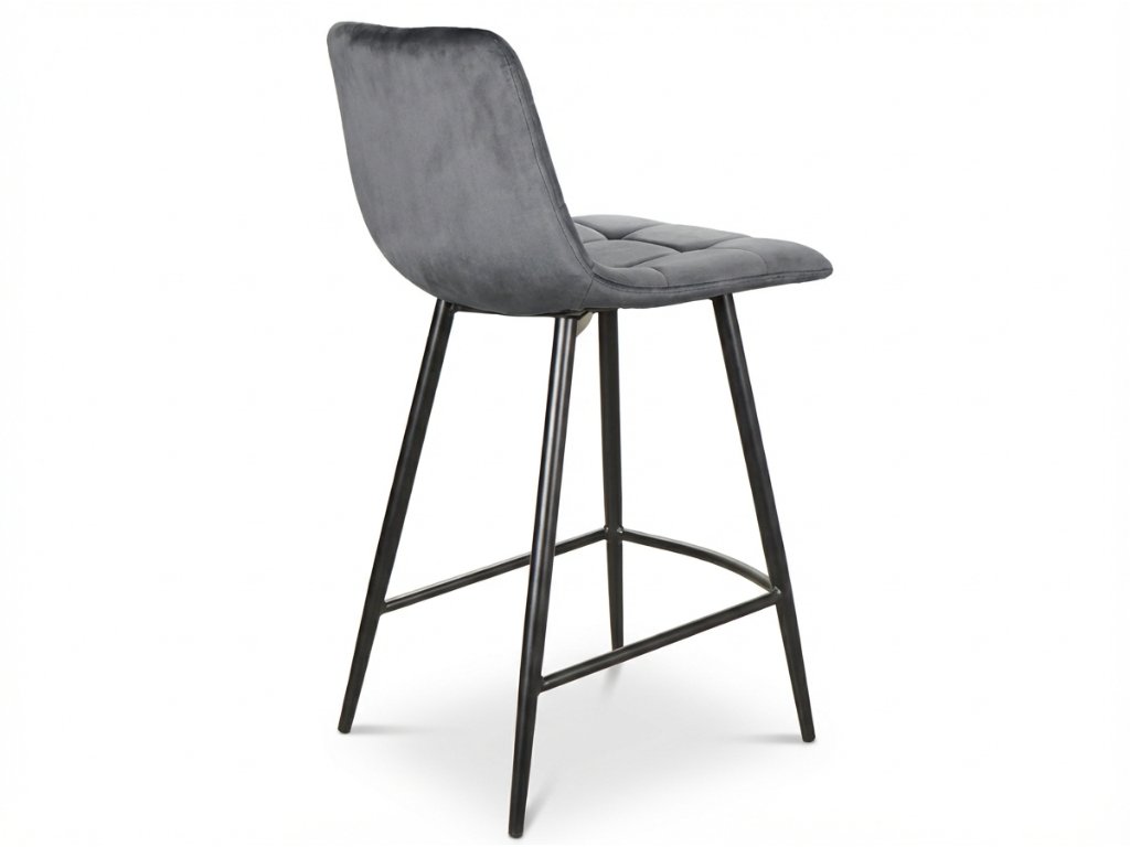 Grauer Barhocker MILA VELVET mit schwarzen Beinen