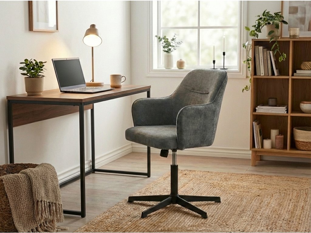Dieser Bürostuhl ergänzt hervorragend Ihren Arbeitsbereich und bringt nicht nur Funktionalität, sondern auch Stil. Dank der bequemen Polsterung und der stabilen Konstruktion wird er Ihr zuverlässiger Begleiter bei täglichen Aufgaben. Das elegante Design fügt sich zudem wunderschön in moderne Wohnungen oder Büros ein und trägt zu einer angenehmen Atmosphäre bei, in der Sie sich besser konzentrieren und entspannen können.