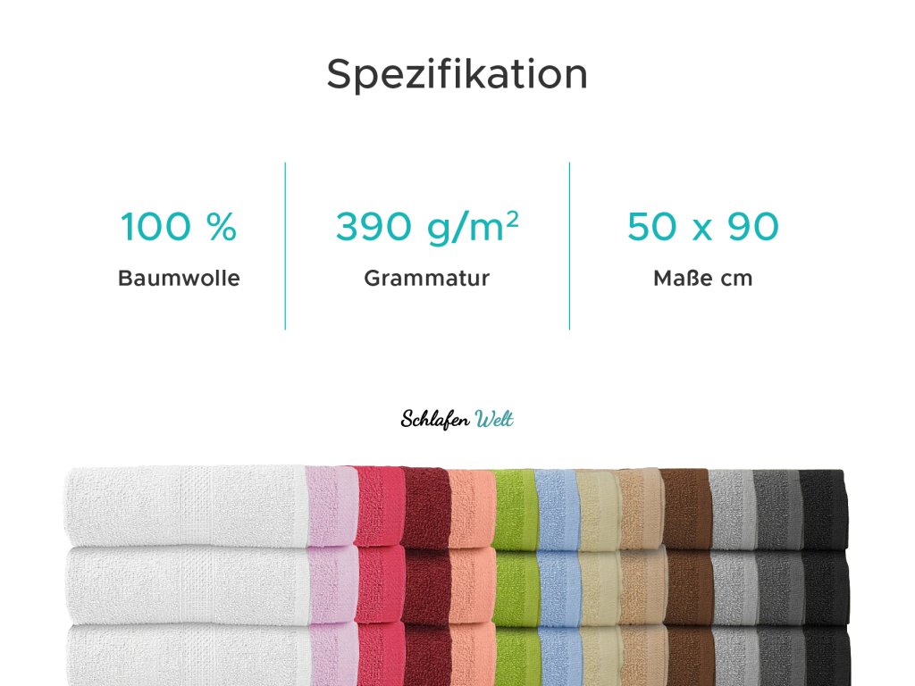 Eine der gebräuchlichsten Handtuchgrößen, die in vielen Haushalten, aber auch in verschiedenen Arten von Unterkünften beliebt ist. Die Größe 50 x 90 cm ist die typische Größe von Handtüchern. Auch für den täglichen Gebrauch im Bad oder am Waschbecken zum Abwischen der Hände geeignet. Es eignet sich auch für das Waschbecken in der Werkstatt oder in verschiedenen Arten von Produktionsräumen.