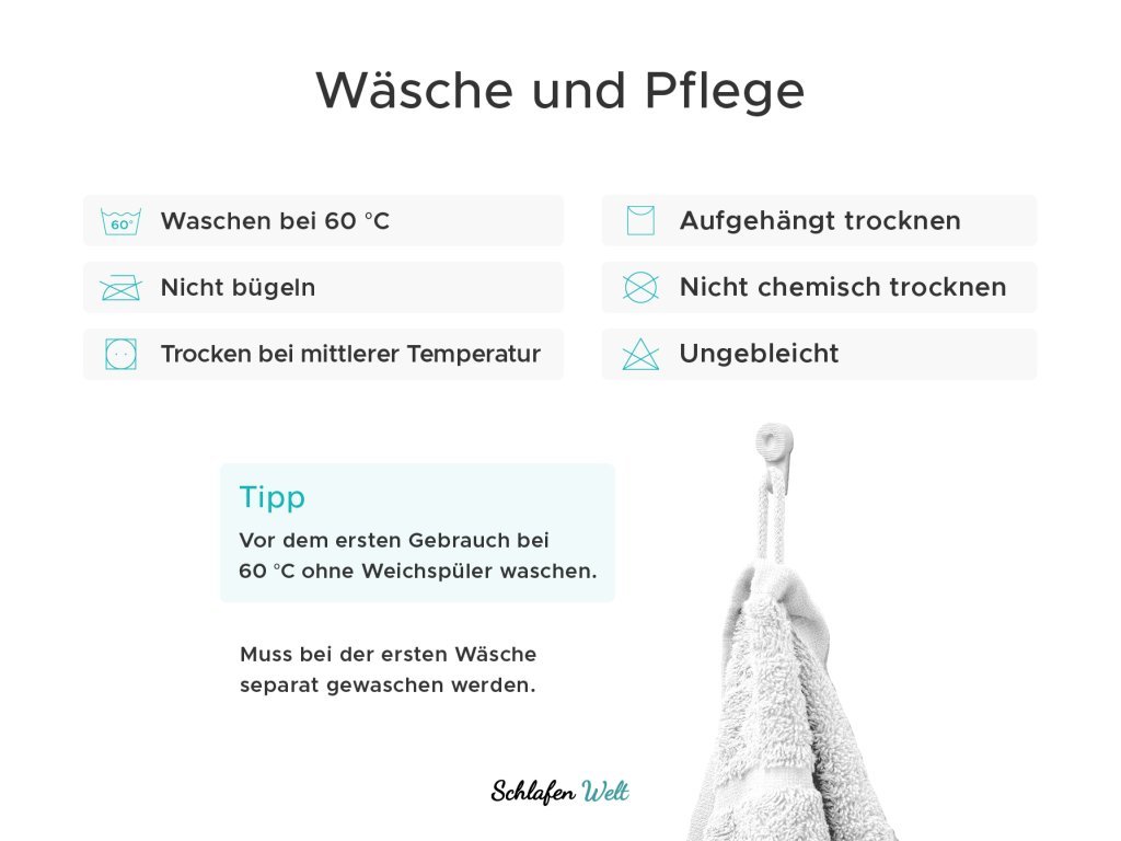 - Für lang anhaltende Weichheit, Sanftheit und Saugfähigkeit wird die Verwendung von Weichspüler nicht empfohlen