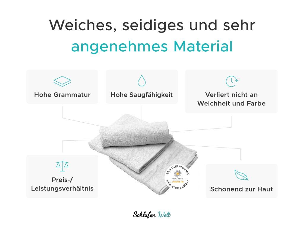 Traditionelle Handtücher aus Baumwolle sind hochwertig und seit Jahrzehnten beliebt. Setzen Sie auf langjährig bewährte Qualität. Handtücher aus Baumwolle haben viele Vorteile: Sie sind weich und fühlen sich angenehm an, sind aber auch robust und saugfähig. Hochwertige Baumwolle mit hohem Gewicht sorgt für Komfort für die ganze Familie, außerdem ist die Pflege von Baumwollhandtüchern wirklich einfach.