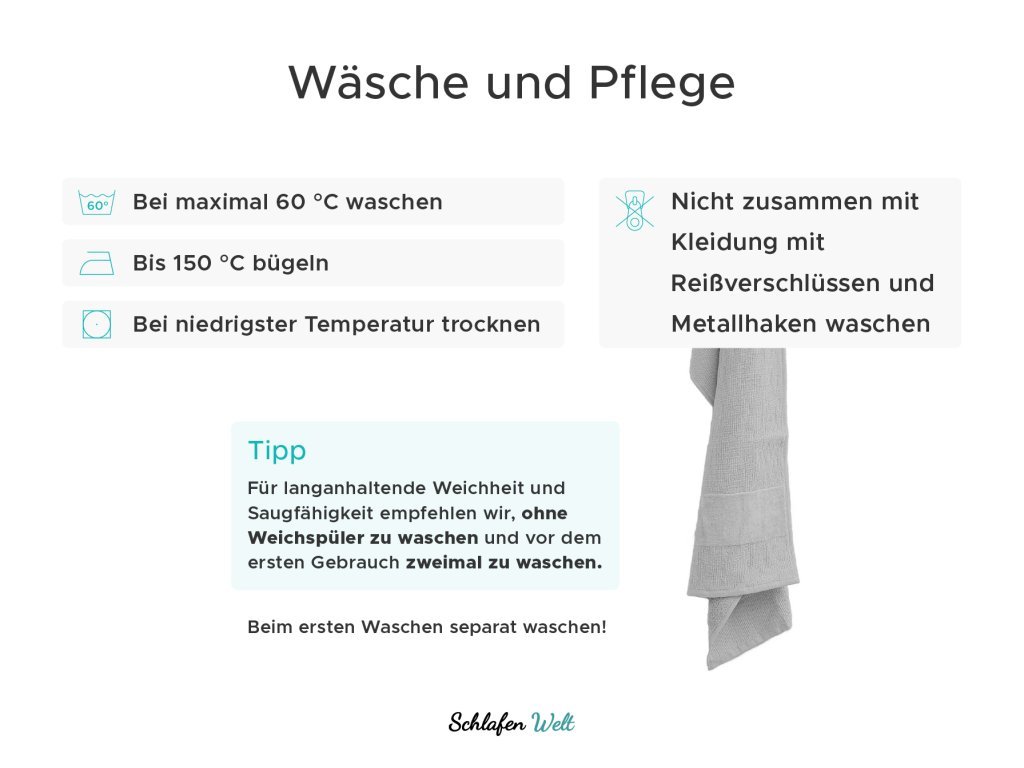 - Um langanhaltende Weichheit, Flauschigkeit und Saugfähigkeit zu erhalten, wird die Verwendung von Weichspüler nicht empfohlen