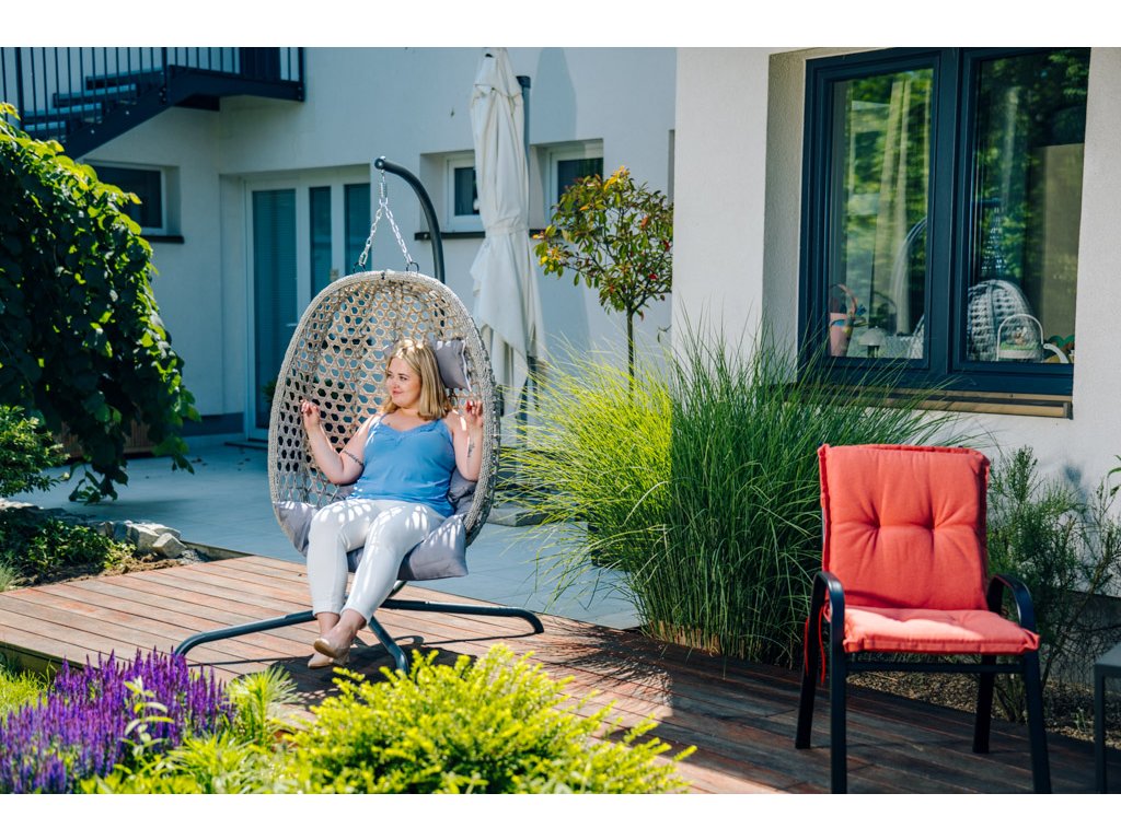 Der Hängesessel ist nicht nur eine großartige Ergänzung für Ihr Zuhause, sondern auch ein perfekter Ort zum Entspannen. Egal ob Sie ihn drinnen, auf der Terrasse oder im Garten platzieren, er bietet stets einen komfortablen Rückzugsort für ruhige Momente. Sanftes Schaukeln erzeugt ein Wohlgefühl und hilft, Stress nach einem langen Tag zu lindern. Dank der hochwertigen Materialien und der robusten Konstruktion können Sie sicher sein, dass er Ihnen über viele Jahre hinweg dienen wird. Genießen Sie Ihr eigenes Stück Entspannung, sei es beim Lesen eines Lieblingsbuchs, beim Musikhören oder beim einfachen Faulenzen.