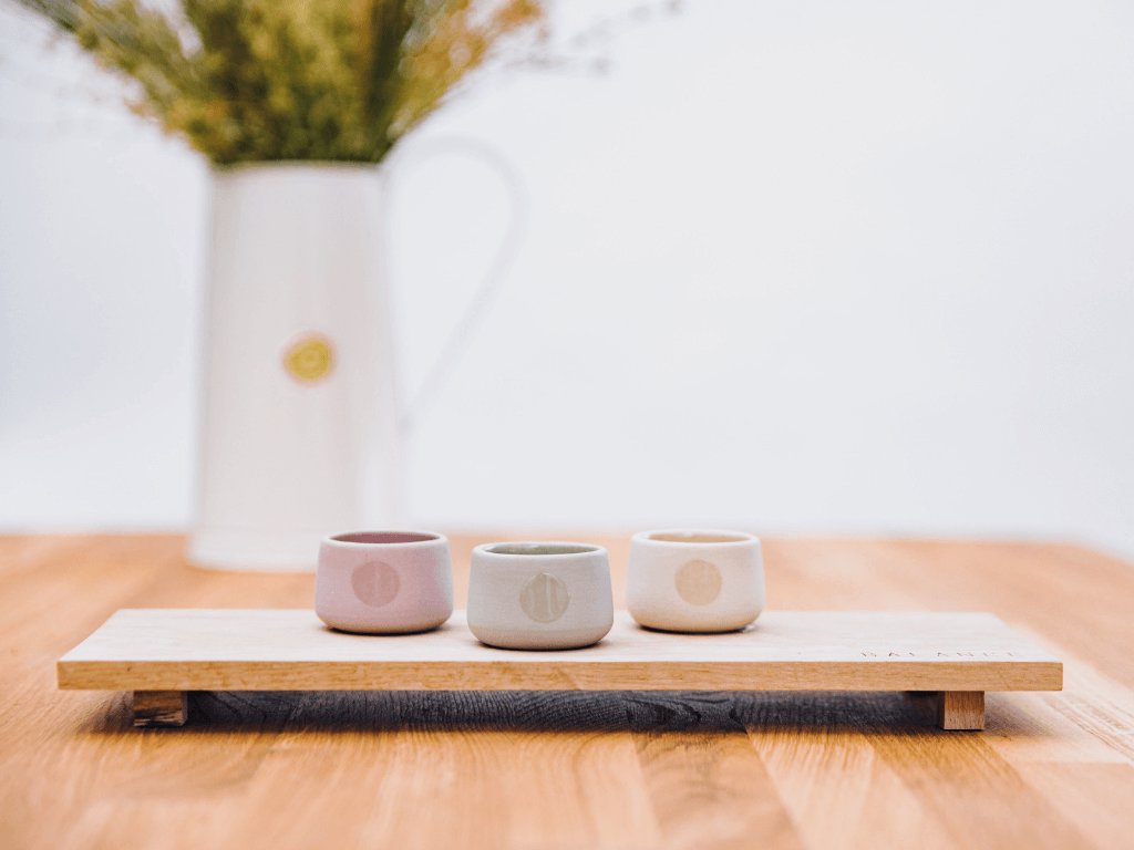 Hellgrauer Kerzenhalter aus Steingut LIGHT GRAY