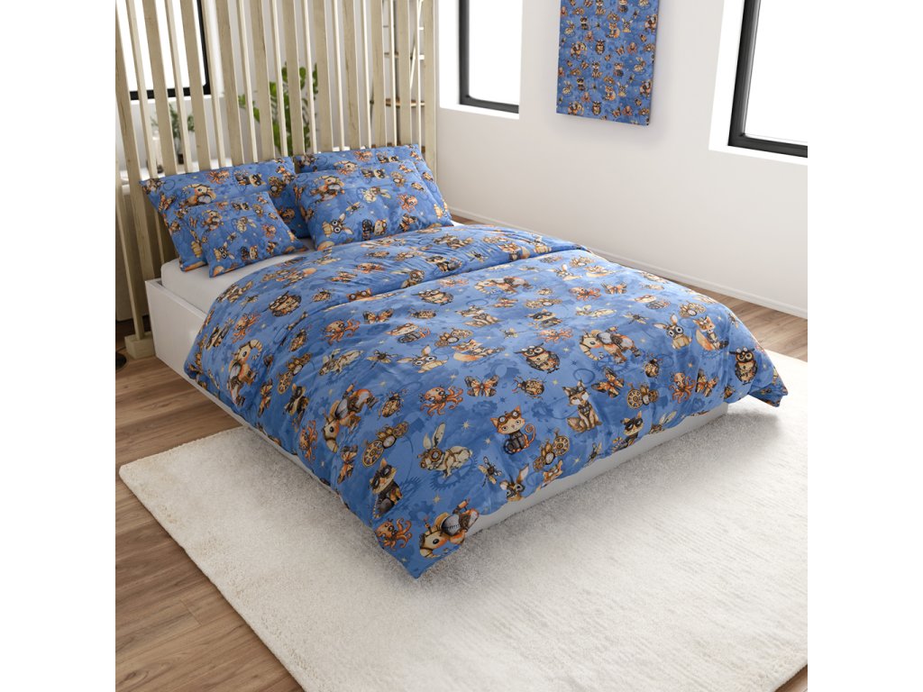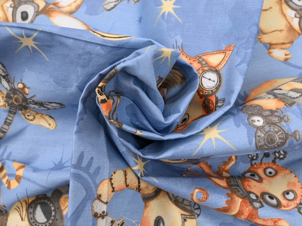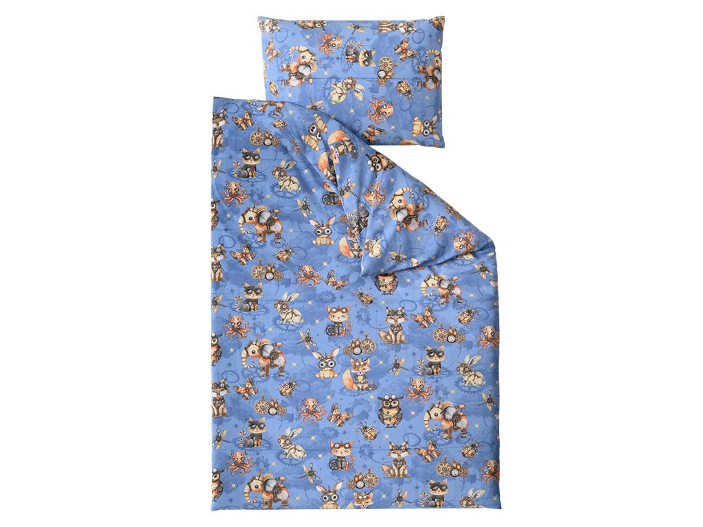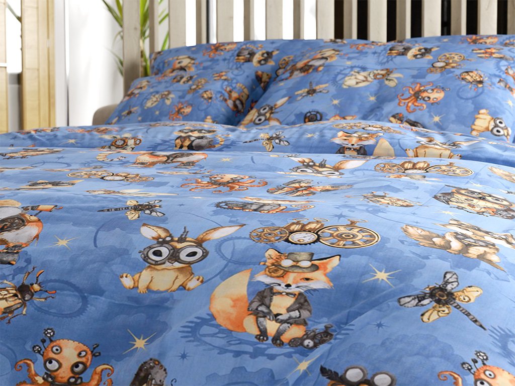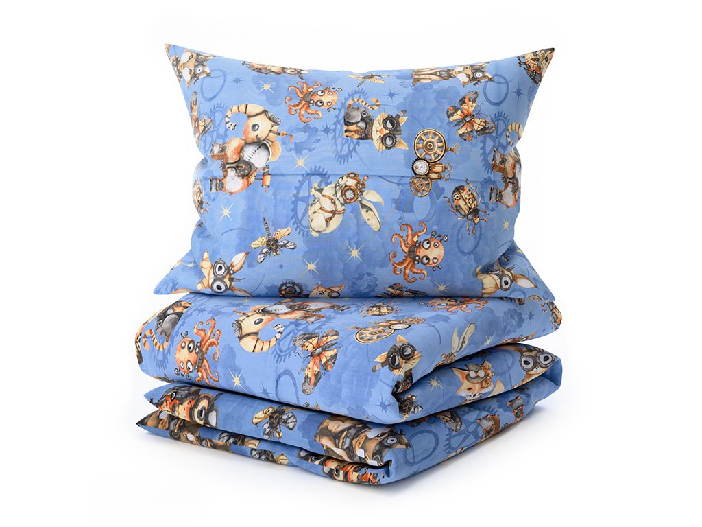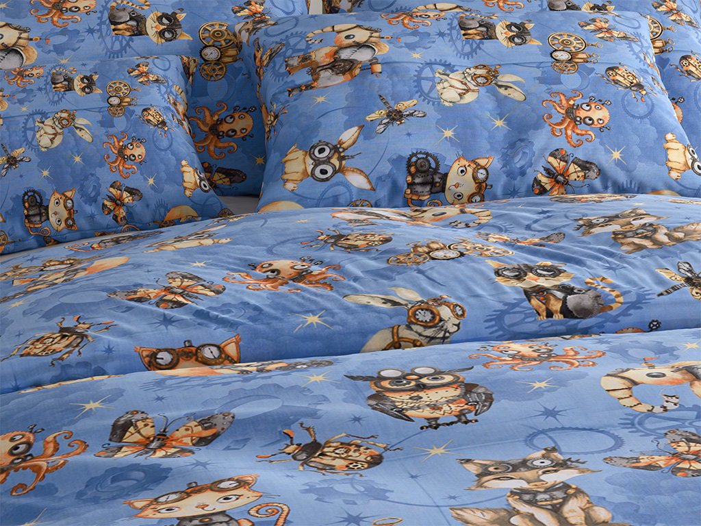Kinder-Baumwollbettwäsche STEAM DREAMS blau