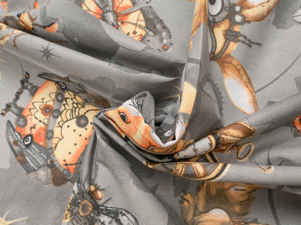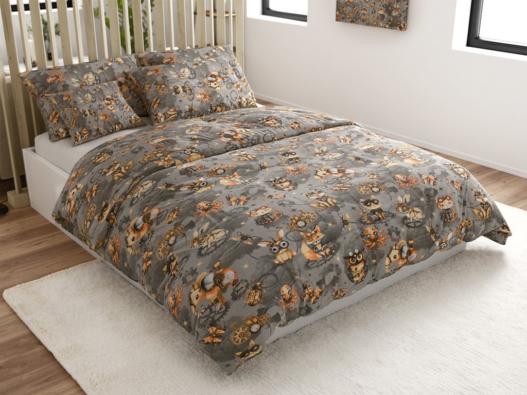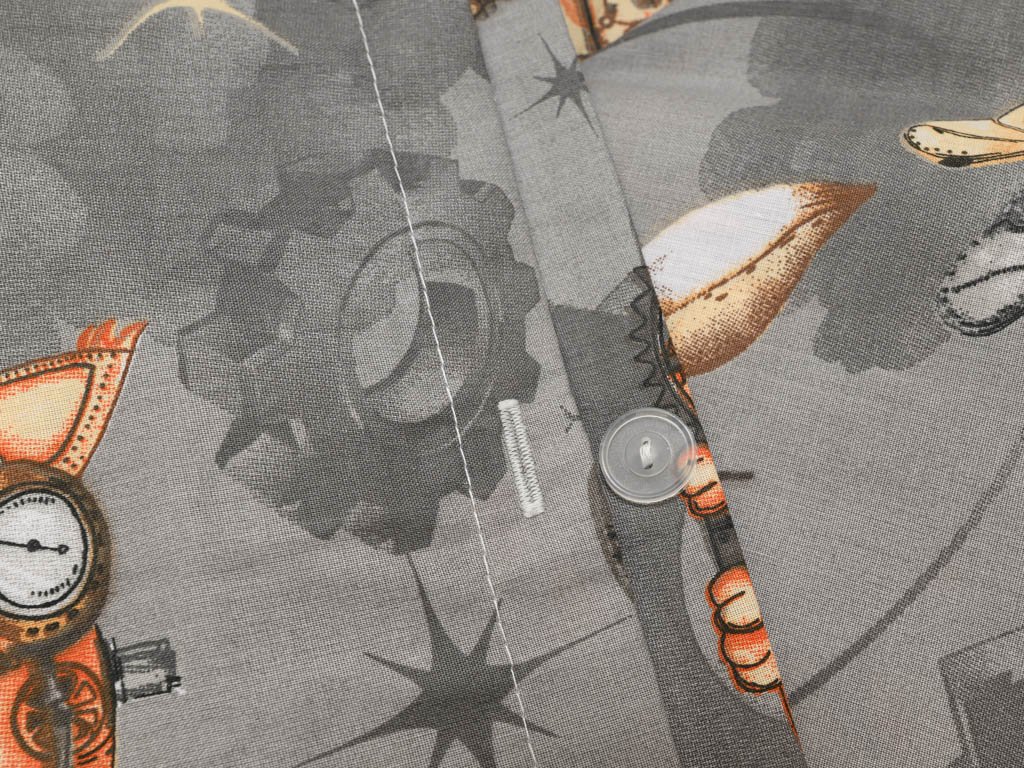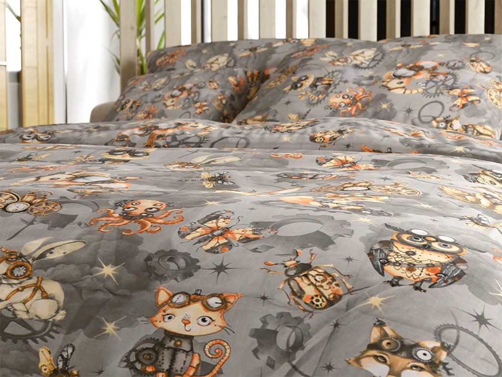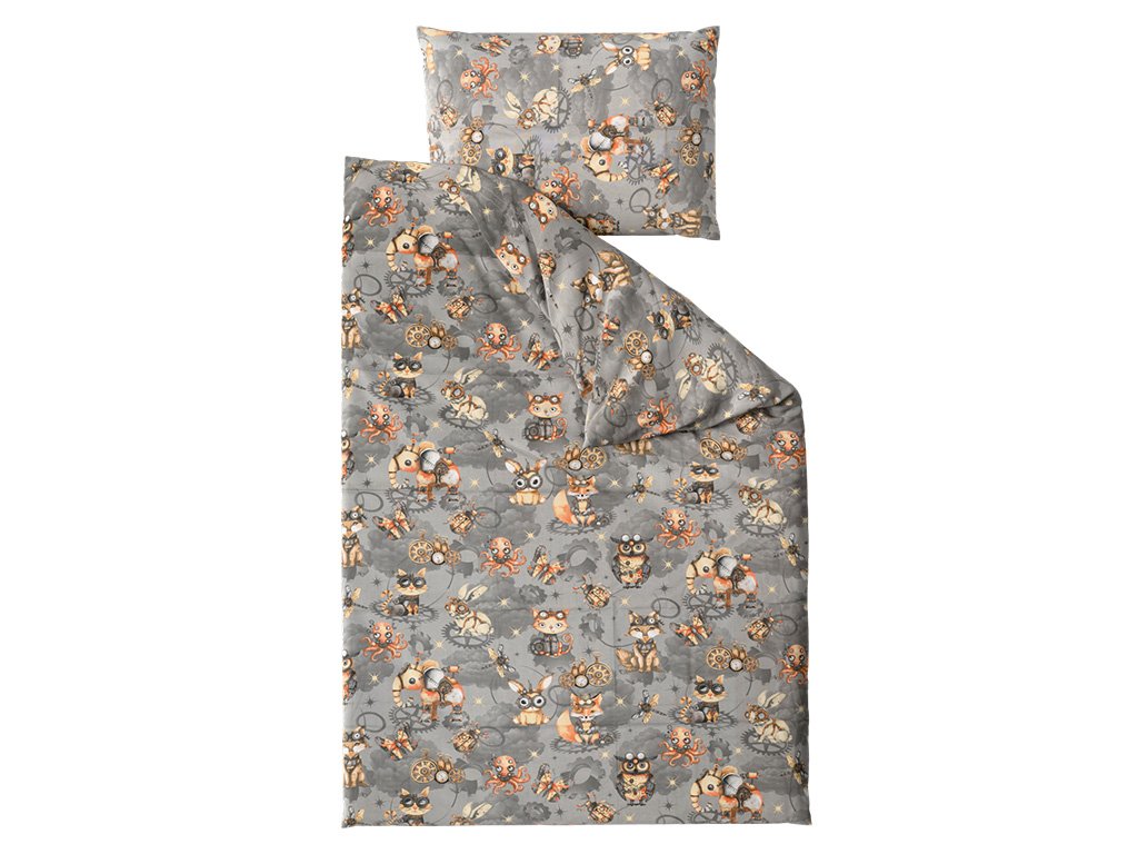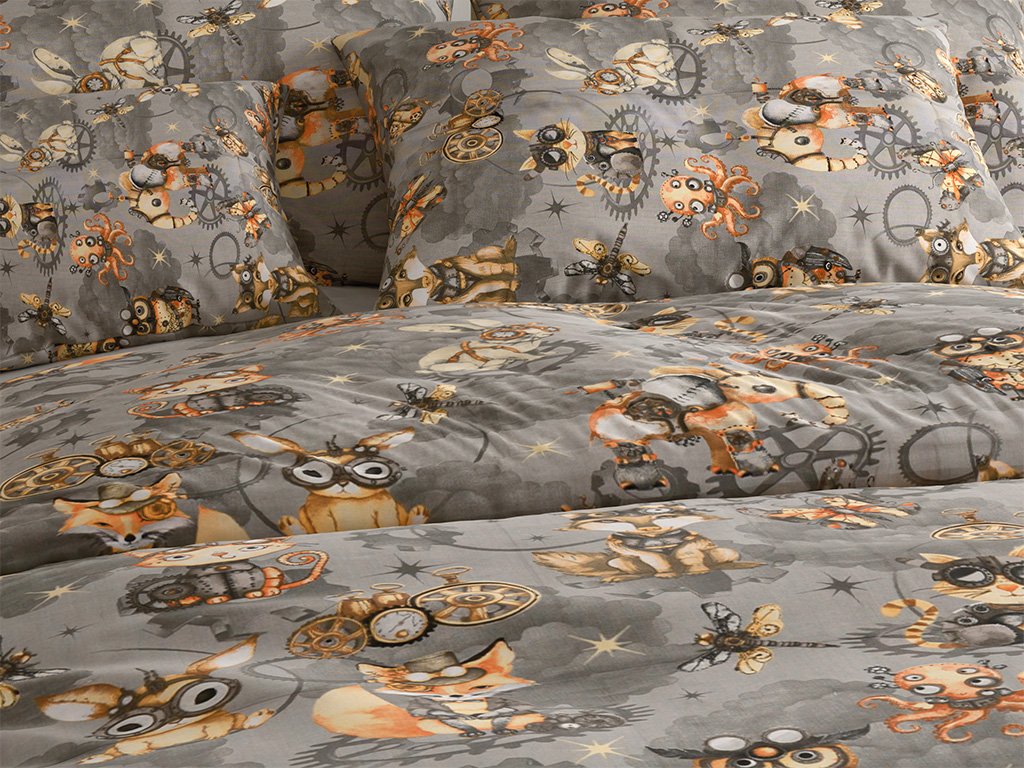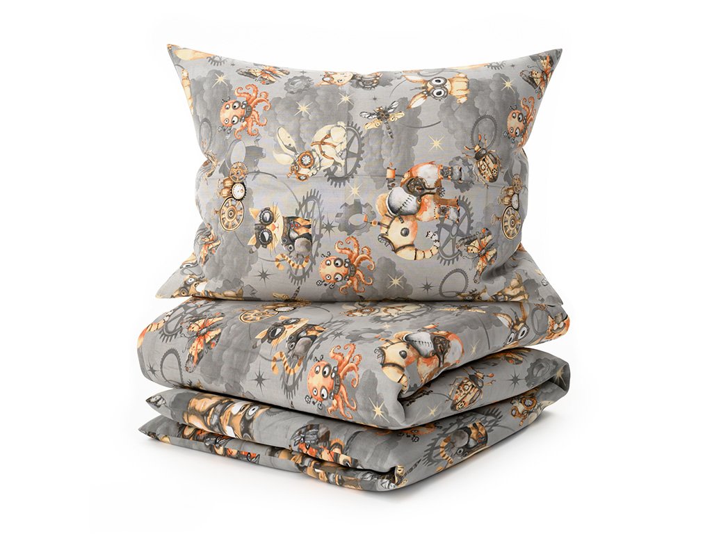 Kinder-Baumwollbettwäsche STEAM DREAMS grau