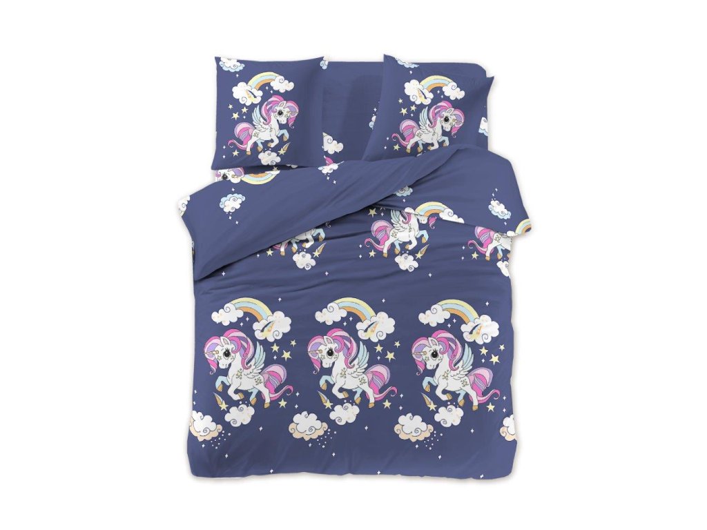 Kinder-Bettwäsche aus Mikrofaser UNICORN blau
