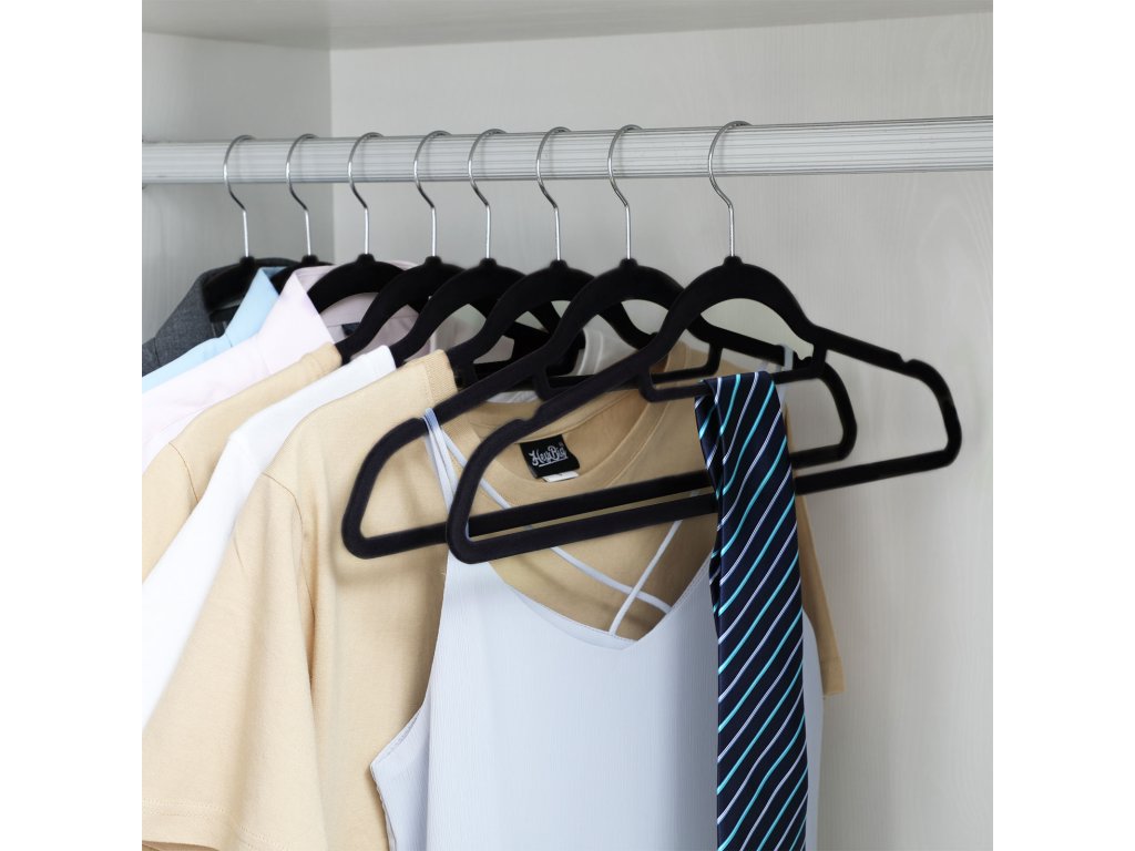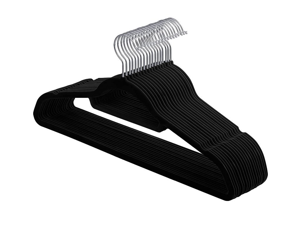 Kleiderbügel mit schwarzem Veloursbezug, 20 Stück