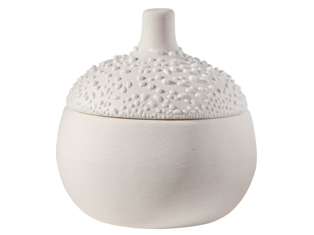 Kleiner cremefarbener Schmuckkasten aus Steingut