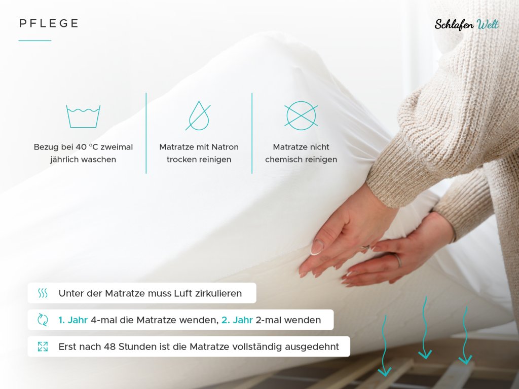 - Ergänzen Sie die Matratze mit einem hochwertigen Lattenrost, der für die richtige Luftzirkulation sorgt