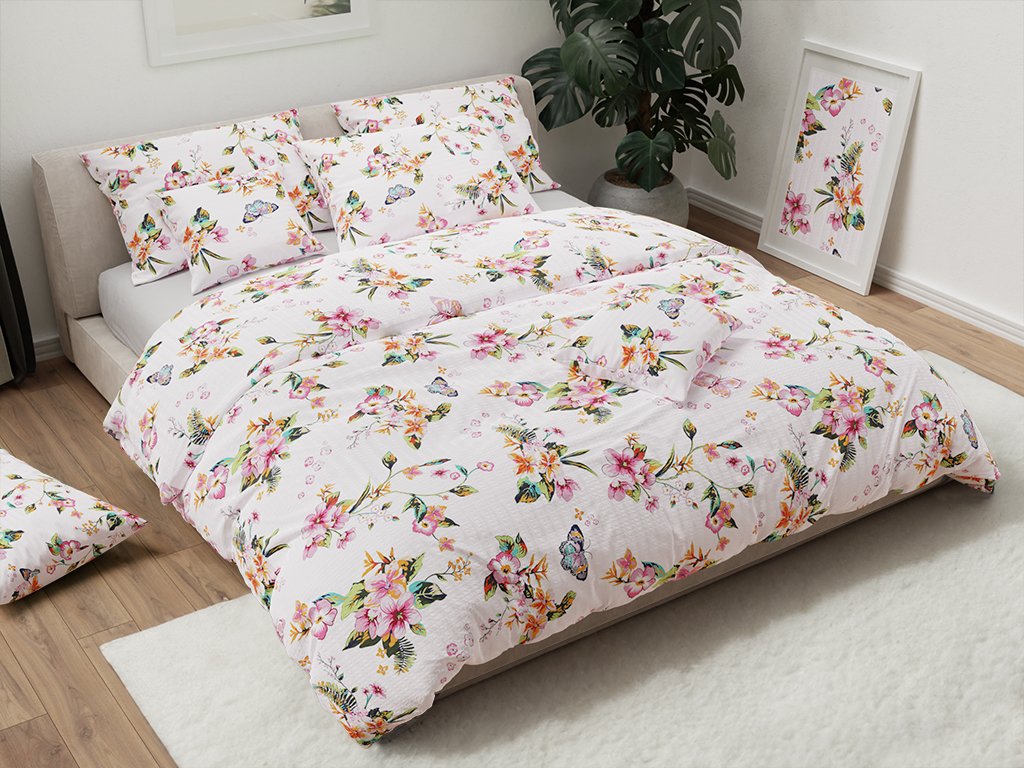 Praktisches Material, das sich durch die gleichen Eigenschaften wie Baumwolle ohne Bügeln auszeichnet. Krepp ist das ideale Material für Kinder und Erwachsene in jeder Jahreszeit. Es wärmt im Winter und kühlt angenehm im Sommer und ist auch für Allergiker geeignet. Einfache Pflege, Saugfähigkeit, Atmungsaktivität und Weichheit bleiben auch auf der typisch gekräuselten Oberfläche erhalten. Die wellige Oberfläche wird durch eine schonende Bearbeitung der Baumwolle erreicht, unter vollständiger Beibehaltung ihrer Eigenschaften.