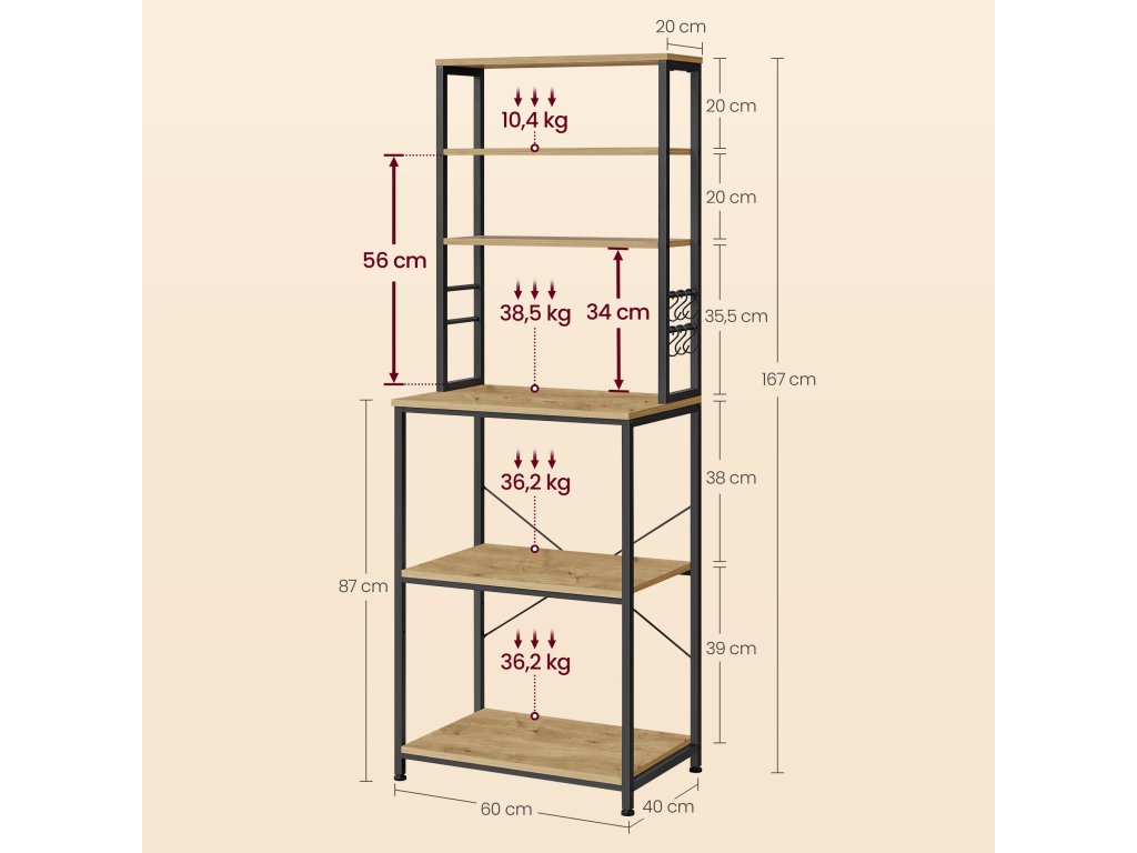 - Hohe Tragfähigkeit der Regalböden, geeignet für die meisten Küchengeräte