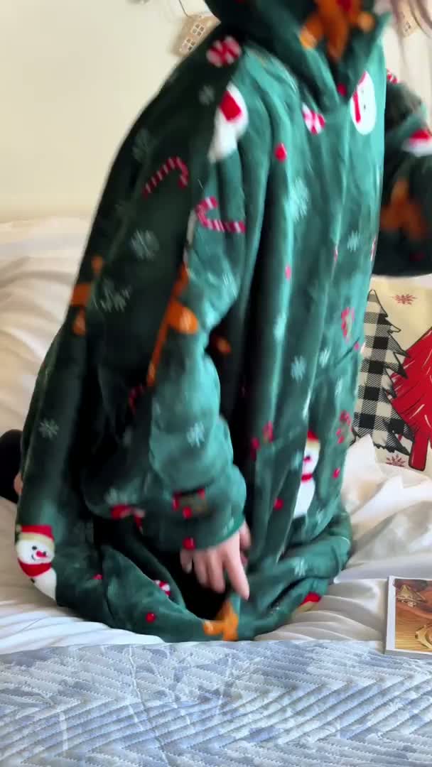 Lammfellimitat-Decke mit Ärmeln und Kapuze SNOWMAN AND GINGERBREAD, grün